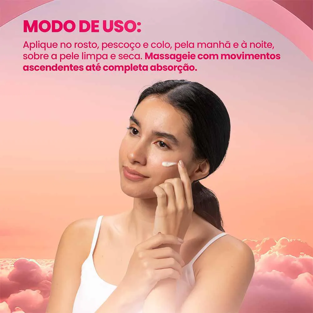 1. Aplique pela manhã e à noite no rosto, pescoço e colo sobre a pele limpa e seca.