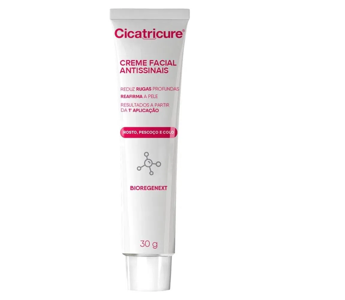 Cicatricure Creme Facial Antissinais possui a tecnologia Bio-Regenext que transmite informações de uma célula para outra, promove a regeneração natural e repara os danos na pele proporcionando aparência mais jovem. Recupera o envelhecimento da pele de 2 anos em 2 meses.