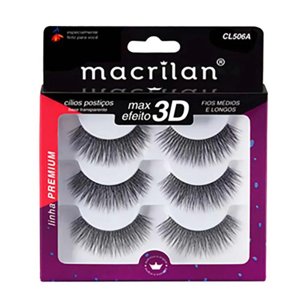 Cílios Postiços Macrilan - Fios Longos e Cruzados Cl506A 3 Pares