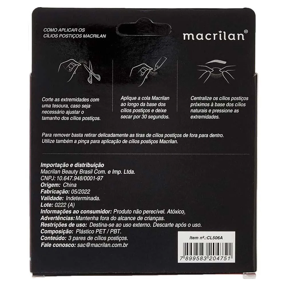 O que é e para que serve?Cílios Postiços Fios Longos e Cruzados CL506A com 3 pares da Macrilan especialmente desenvolvidos para preencher, realçar e dar volume aos cílios naturais com praticidade.
