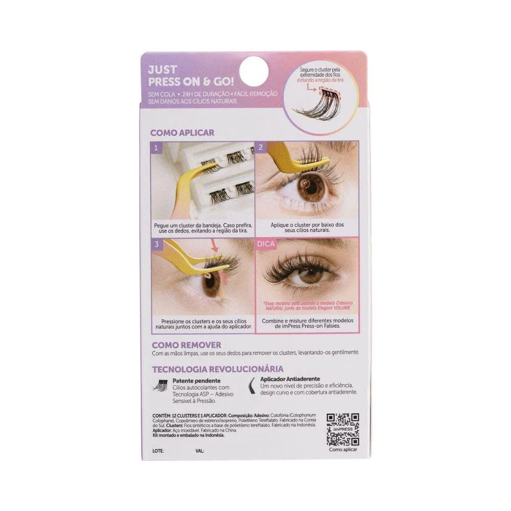 #html-body [data-pb-style=TFKJYTQ]{justify-content:flex-start;display:flex;flex-direction:column;background-position:left top;background-size:cover;background-repeat:no-repeat;background-attachment:scroll}imPRESS Press-on Falsies é a primeira linha de cílios postiços autocolantes do mercado. Sem cola, sem tempo de secagem e sem danos aos cílios naturais. Com Tecnologia ASP (Adesivo Sensível à Pressão), a mesma das unhas imPRESS, os clusters de cílios possuem adesivos autocolantes que aderem instantaneamente ao cílios naturais. Com apenas 1 passo e em 10 segundos, garanta 24 horas de duração e aparência 100% natural. Nunca mais tenha medo de aplicar cílios postiços! O kit Mini é o ideal para quem quer experimentar a nova tecnologia, contém 12 clusters e um aplicador com um design único antiaderente e com uma curvatura que garante o ângulo perfeito para a aplicação dos seus imPRESS Press-on Falsies