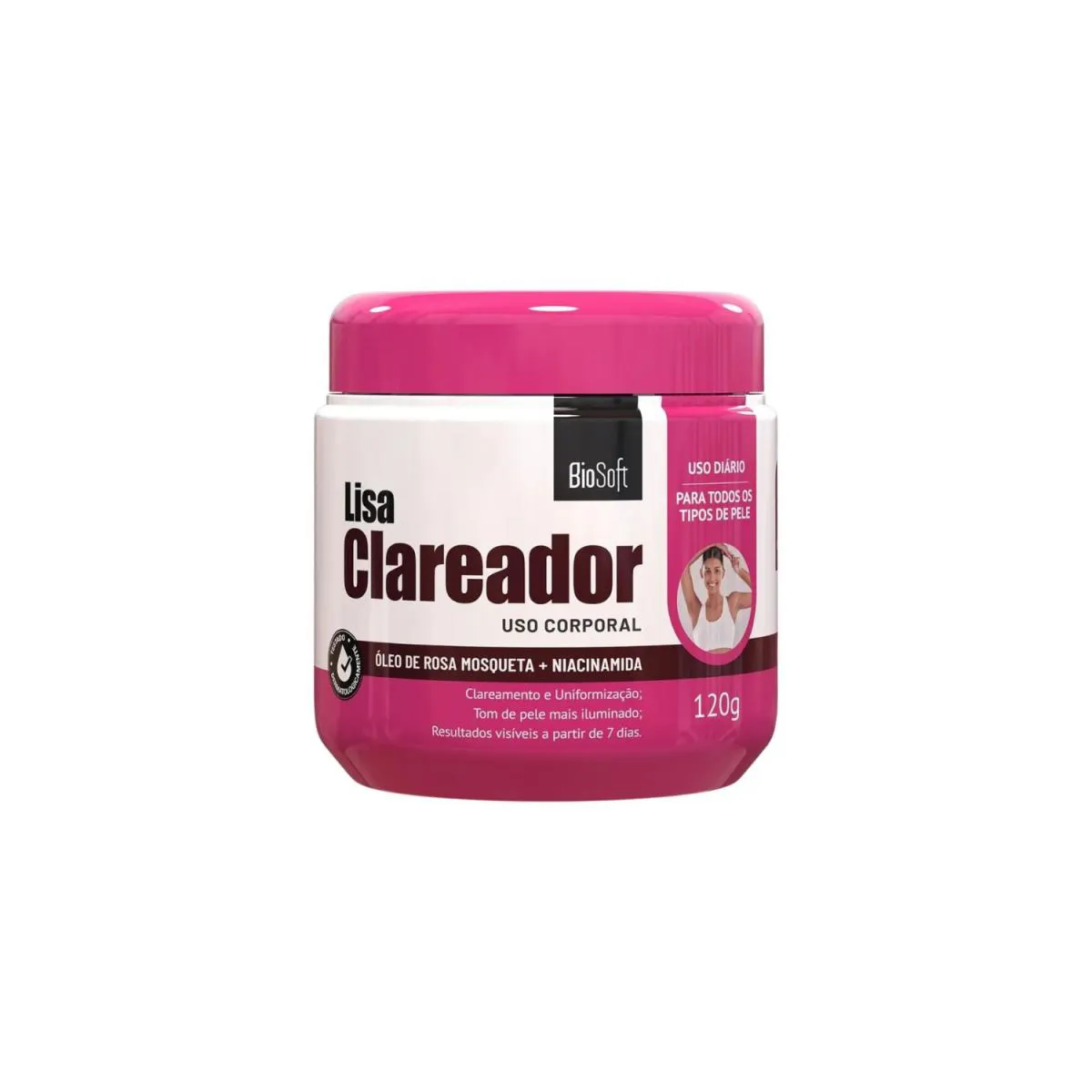 - Reduz manchas em axilas, virilha, joelhos e cotovelos.