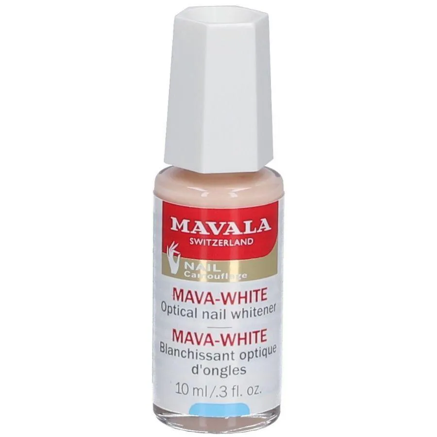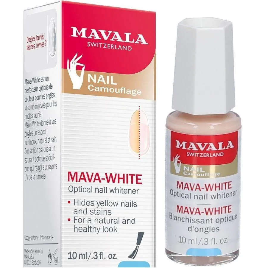 Mavala Mava White Clareador Mavala Mava-White foi desenvolvido para esconder o amarelado e as manchas causadas por diversos fatores como resto de pigmento de esmalte, nicotina, outras colorações entre outros. Reage aos raios UV e deixa as unhas com aspecto natural, saudável e com efeito mate. Conselho de Aplicação: Aplique Mava White diretamente nas unhas limpas para obter um efeito mate. Para adquirir um efeito brilhante e duradouro, aplique uma camada de base após o Mava White secar. Caso as unhas não estejam amareladas e deseje um efeito luminoso, aplique o produto após uma base. Ação / Resultado: Unhas bonitas, com cor natural, sem manchas e sem amarelado!