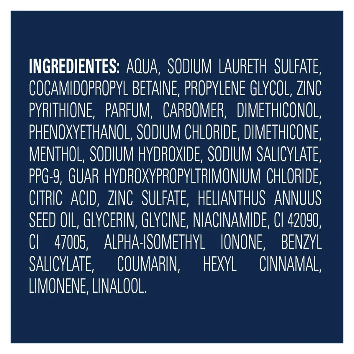 Aqua, Sodium Laureth Sulfate, Cocamidopropyl Betaine, Dimethiconol, Zinc Pyrithione, Dimethicone, Parfum, Carbomer, Sodium Chloride, Dmdm Hydantoin, Guar Hydroxypropyltrimonium Chloride, Zinc Sulfate, Helianthus Annuus Seed Oil, Glycerin, Ppg-9, Sodium Polyacryloyldimethyl Taurate.