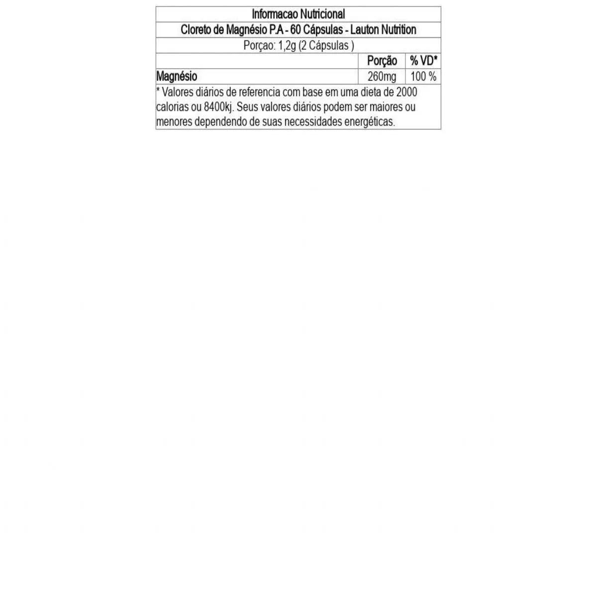 Cloreto de Magnésio P.a - 60 Cápsulas - Lauton Nutrition