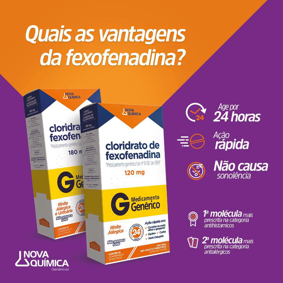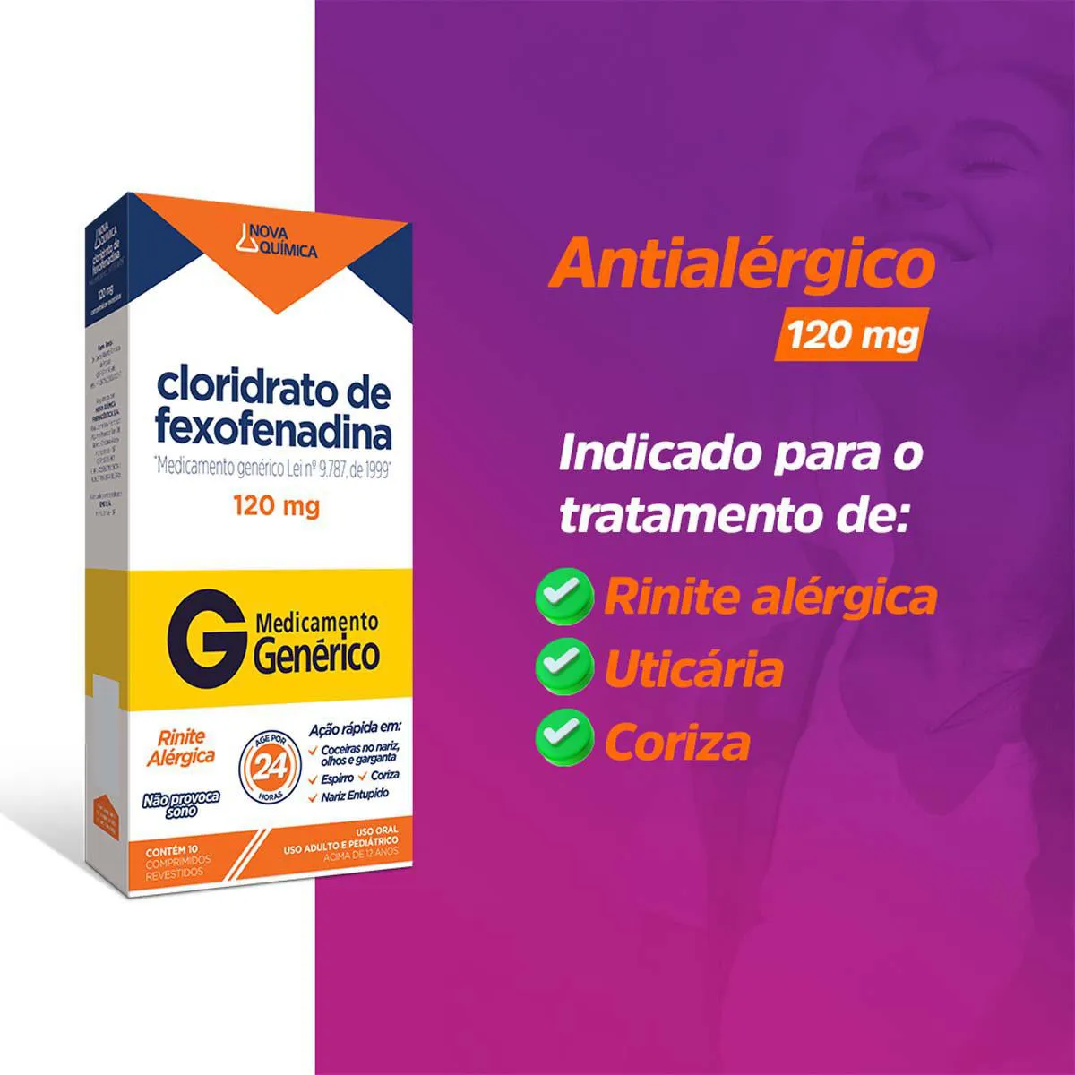 Cloridrato de Fexofenadina 120mg 10 comprimidos Nova Química Genérico