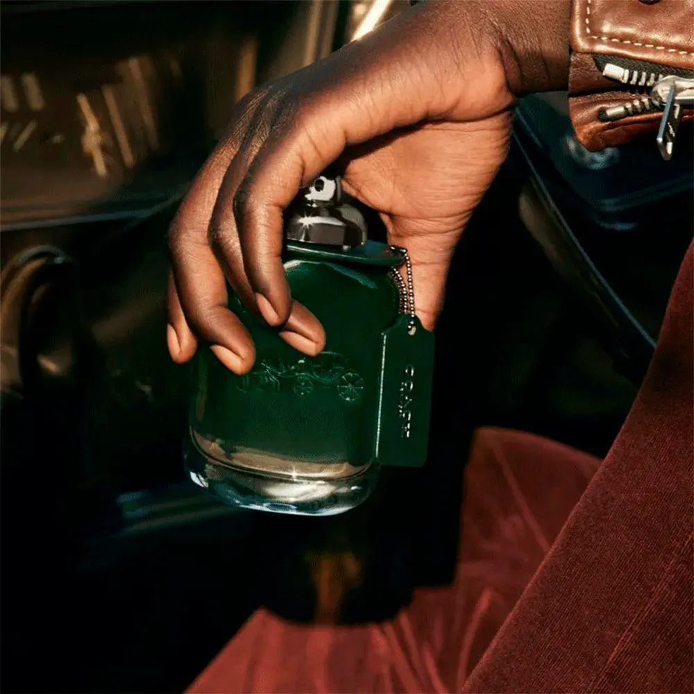 O Coach Green Eau de Toilette é uma fragrância fresca e verde para o homem moderno e conectado à natureza que busca um aroma revigorante e sustentável para o dia a dia. Inspirado em escapes verdes na cidade, ele une kiwi suculento e bergamota cítrica a toques aromáticos de alecrim e gerânio, proporcionando uma transformação de frescor imediato em vitalidade equilibrada e natural, criando uma conexão emocional de liberdade, energia e autoconfiança que desperta admiração e bem-estar em ambientes urbanos ou ao ar livre.