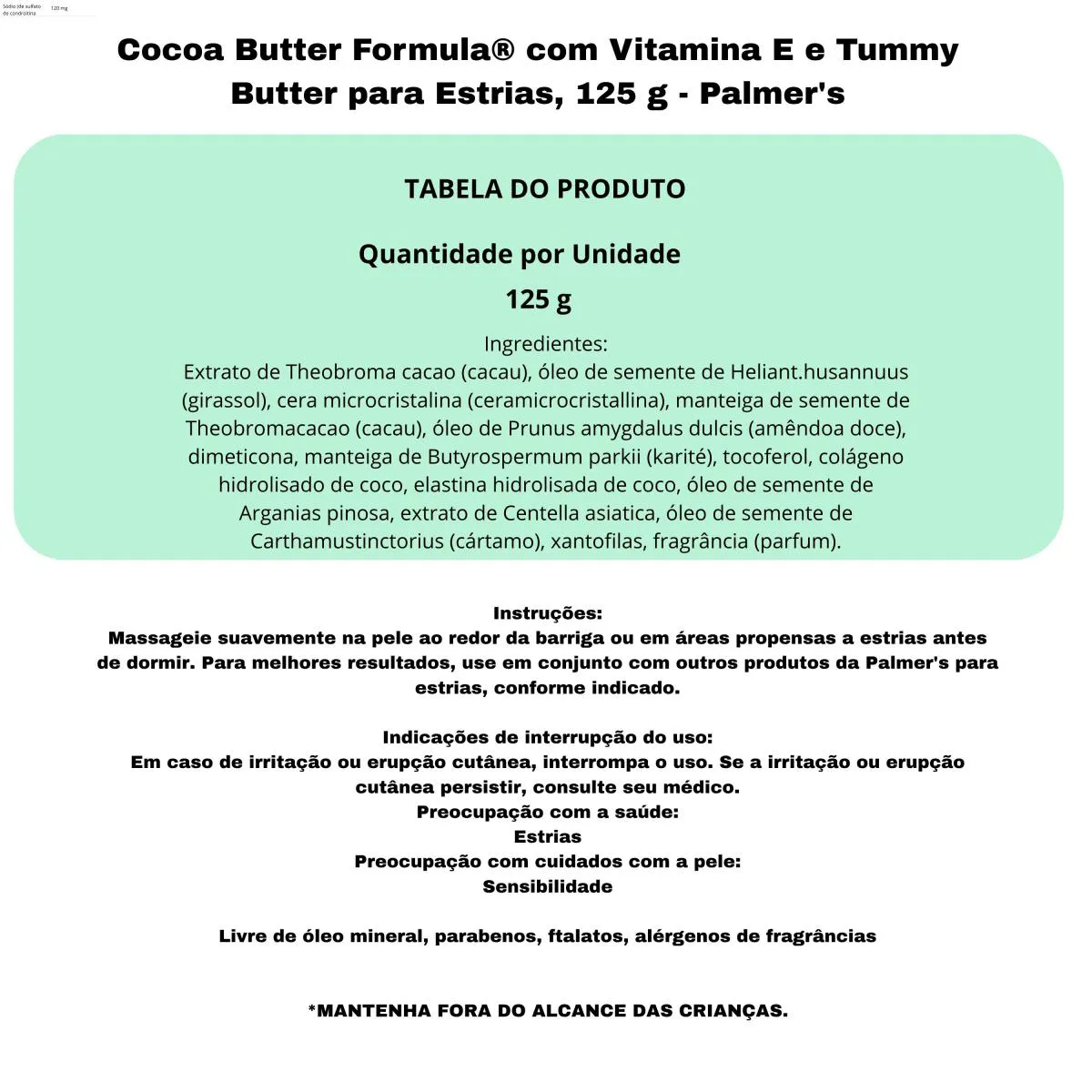 Cocoa Butter Formula® com Vitamina e e Tummy Butter para Estrias, 125 G - Palmer's