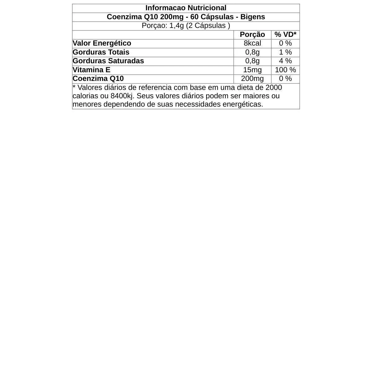 Coenzima Q10 200Mg - 60 Cápsulas - Bigens