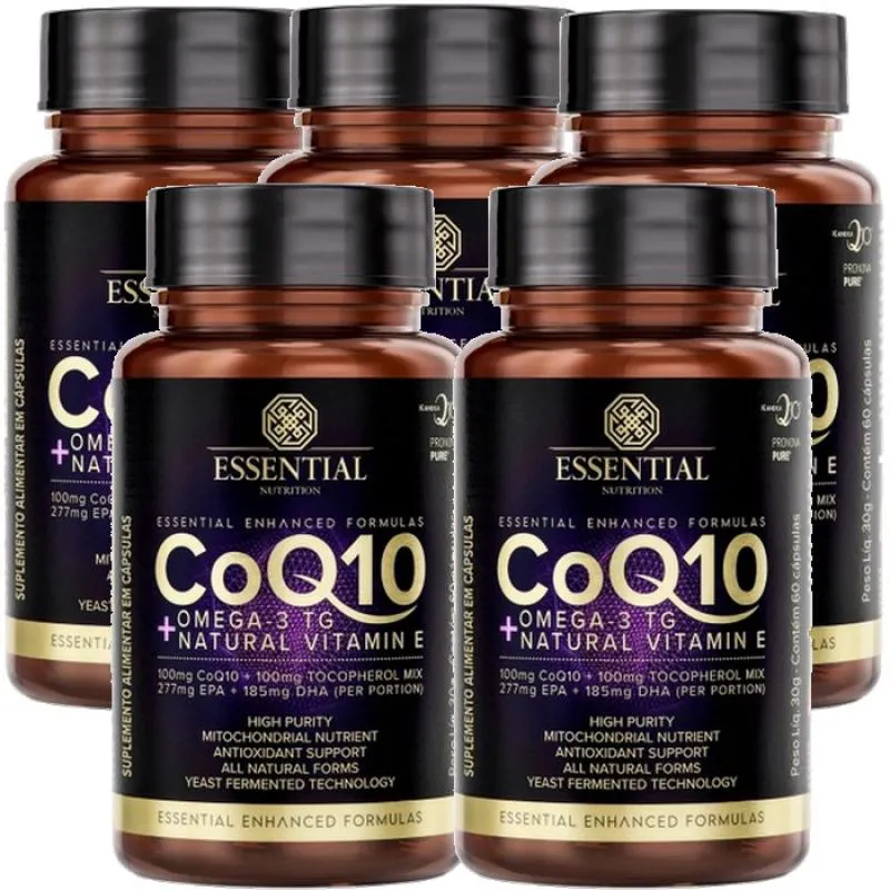 Coenzima Q10 Essential Nutrition Com Omega 3 + Vitamina E - Coq10 - (Combo 5 Un Com 60 Capsulas Cada)