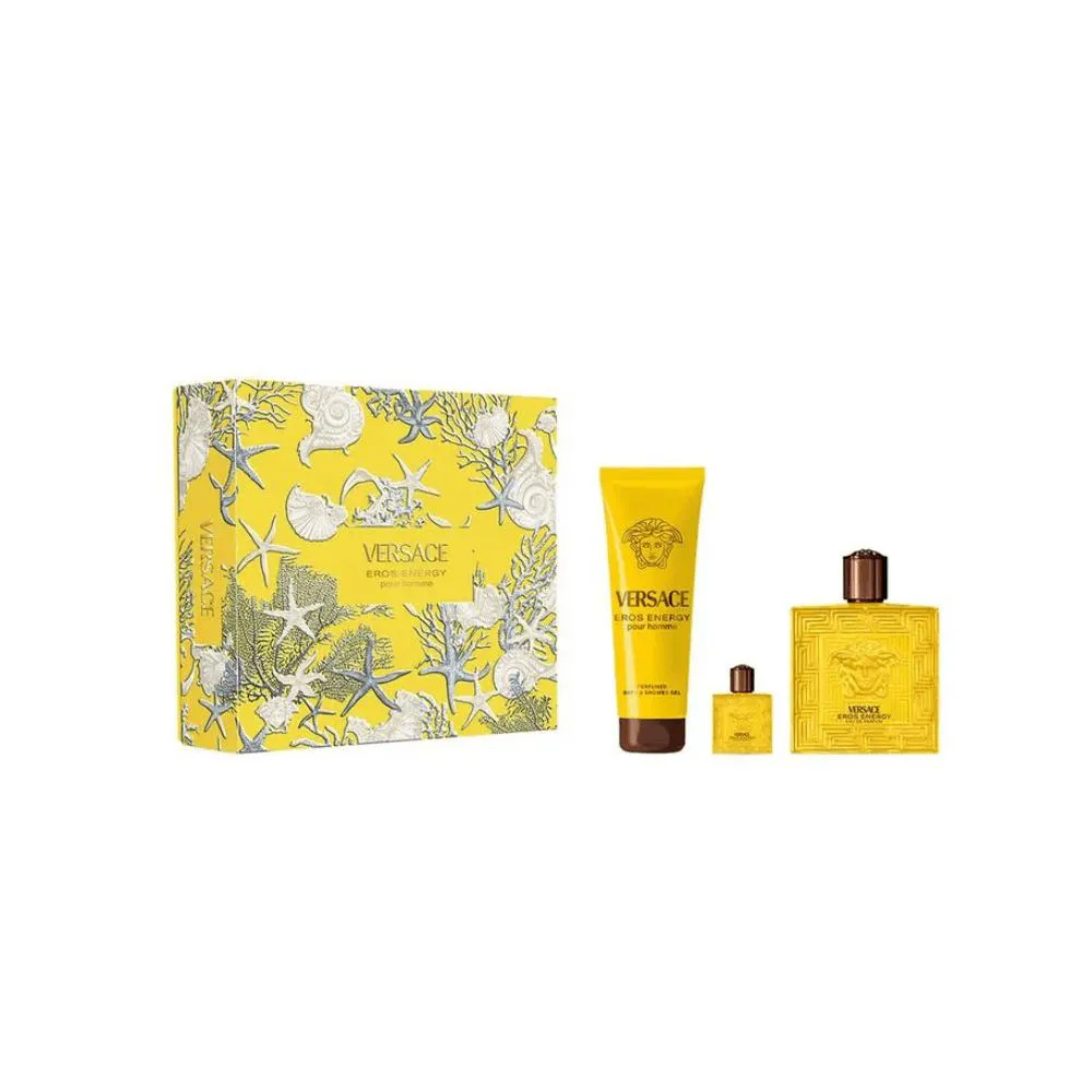 O conjunto de presente masculino Versace Eros Energy inclui um frasco de 100ml de Eau de Parfum, um gel de banho de 150ml e um prático frasco de viagem de 10ml, todos apresentados numa elegante caixa. Este conjunto é o presente ideal para o homem moderno que valoriza estilo, força e fragrâncias frescas e dinâmicas.