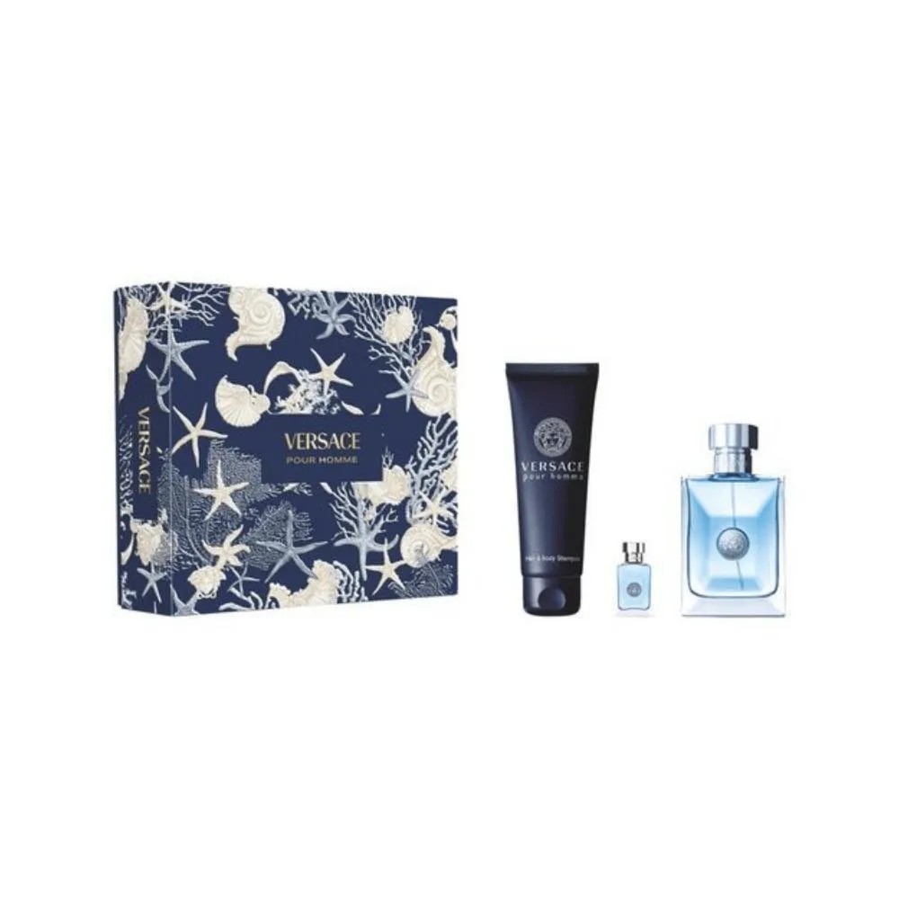 O conjunto Versace Pour Homme inclui um Eau de Toilette spray de 100ml, um Gel de banho de 150ml e um prático Eau de Toilette Mini de 5ml, sendo o conjunto perfeito tanto para o uso diário quanto para viagens. Cada produto é perfumado com uma mistura fresca e suave de notas inspiradas no Mediterrâneo, que refletem confiança, charme e um estilo atemporal.