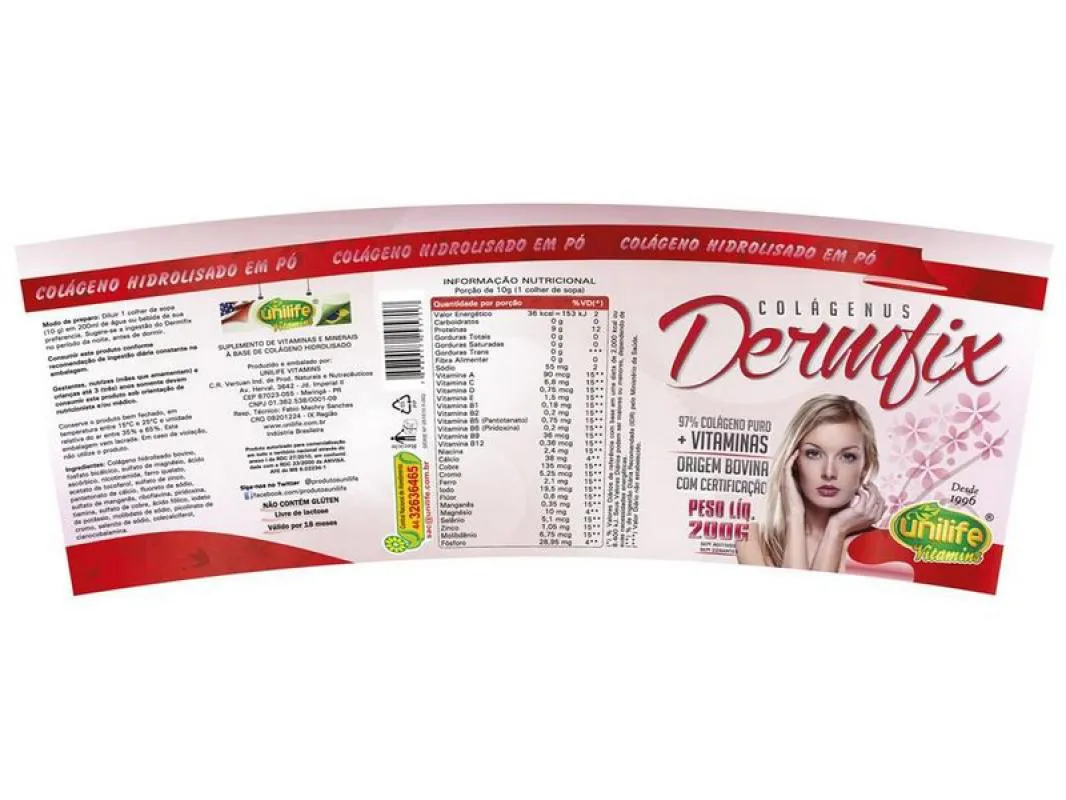 O Colágeno Hidrolisado Dermix em pó da Unilife tem diversas utilidades, em sua composição temos a sua principal substancia muito importante que é o Colágeno, o Colágeno em uma pequena quantidade pode se encontrar em nosso organismo de forma naturalmente, portanto a partir dos 25 anos já perdemos cerca de 1% de produção de Colágeno anualmente, o que pode ser preocupante pois é uma responsável pela boa qualidade da pele e os ossos de todo o corpo, juntamente com o Colágeno encontramos a vitamina A, Vitamina C, e Vitamina E que permite o Colágeno Hidrolisado Dermix fazer uma atuação diretamente na melhor qualidade óssea e da pele de todo o corpo.