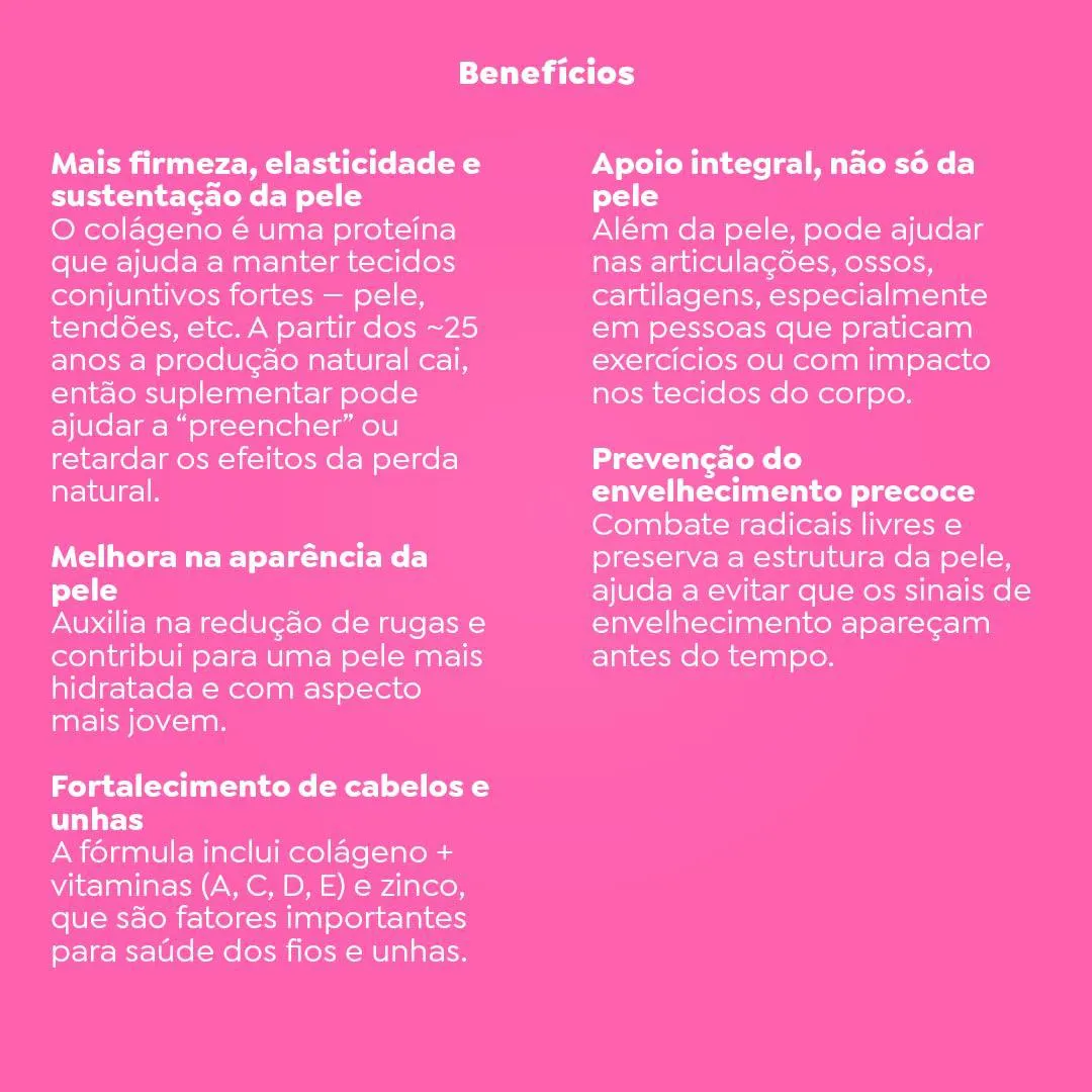 - Suplemento com colágeno hidrolisado e nutrientes.