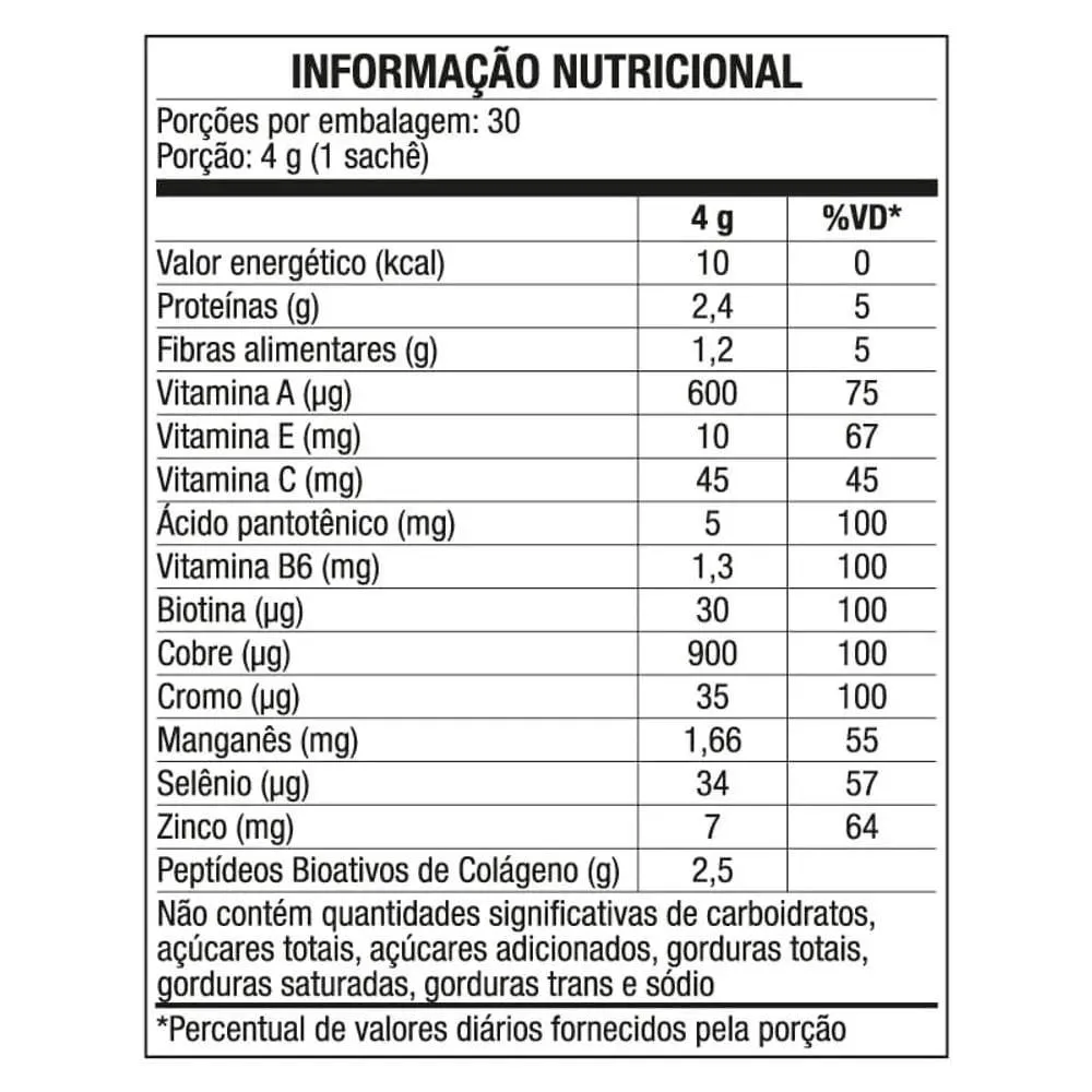 - Contém 2,5 g de colágeno Verisol® em cada sachê;