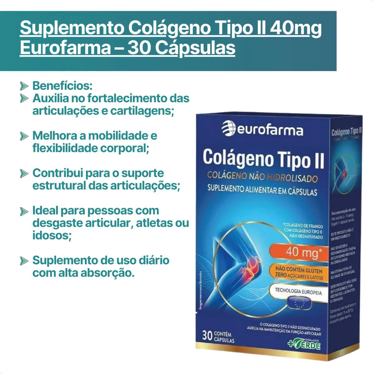 colágeno Não Hidrolisado Tipo II 40 mg 30 Cápsulas Eurofarma