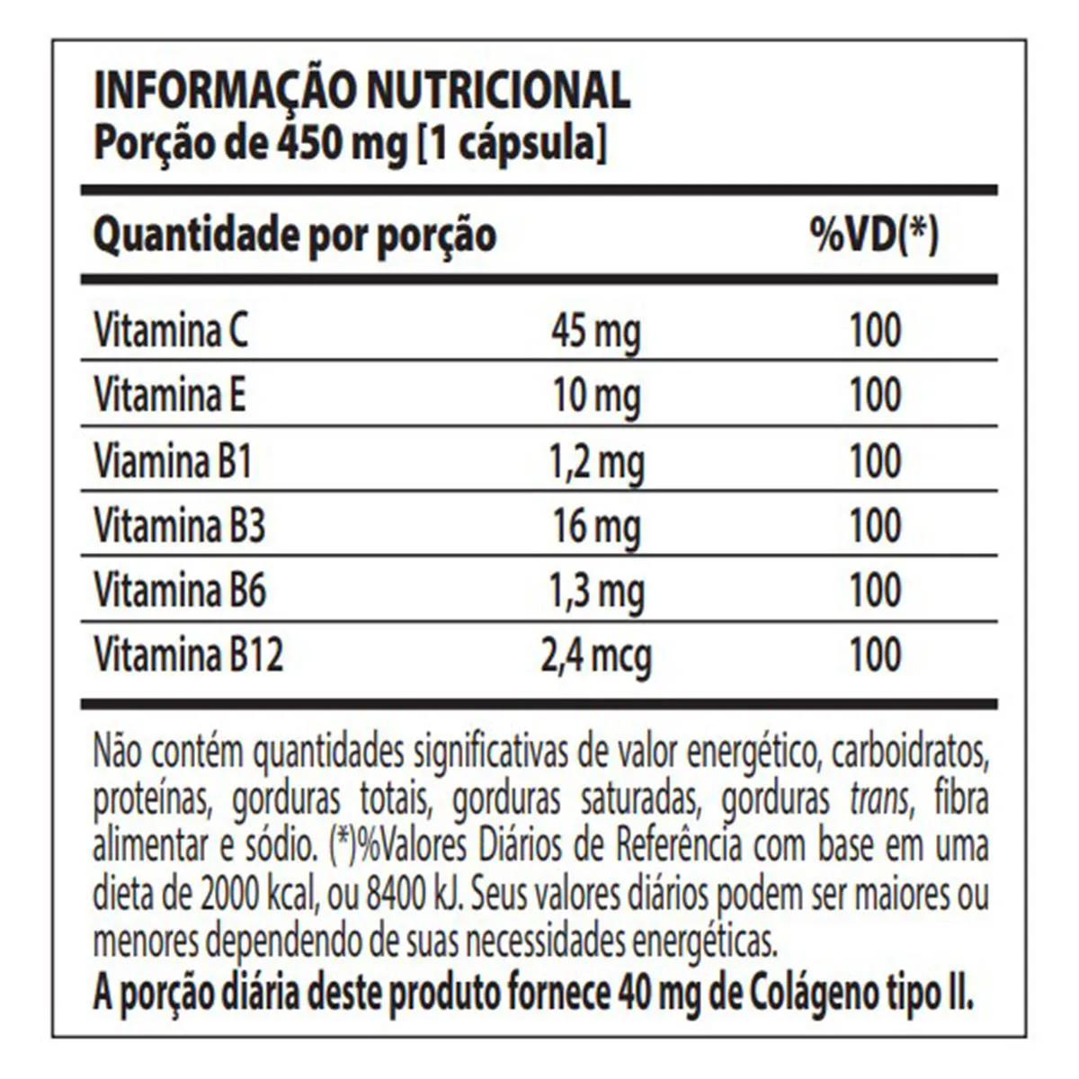 - Contém colágeno de frango tipo II.