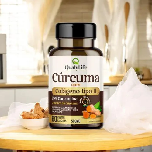 A Cúrcuma com Colágeno Tipo 2 da Qualylife é um suplemento alimentar desenvolvido para promover a saúde das articulações. Combina o extrato de rizomas de cúrcuma longa, reconhecido por suas propriedades anti-inflamatórias e antioxidantes, com o colágeno tipo II, essencial para a manutenção da integridade das cartilagens articulares.