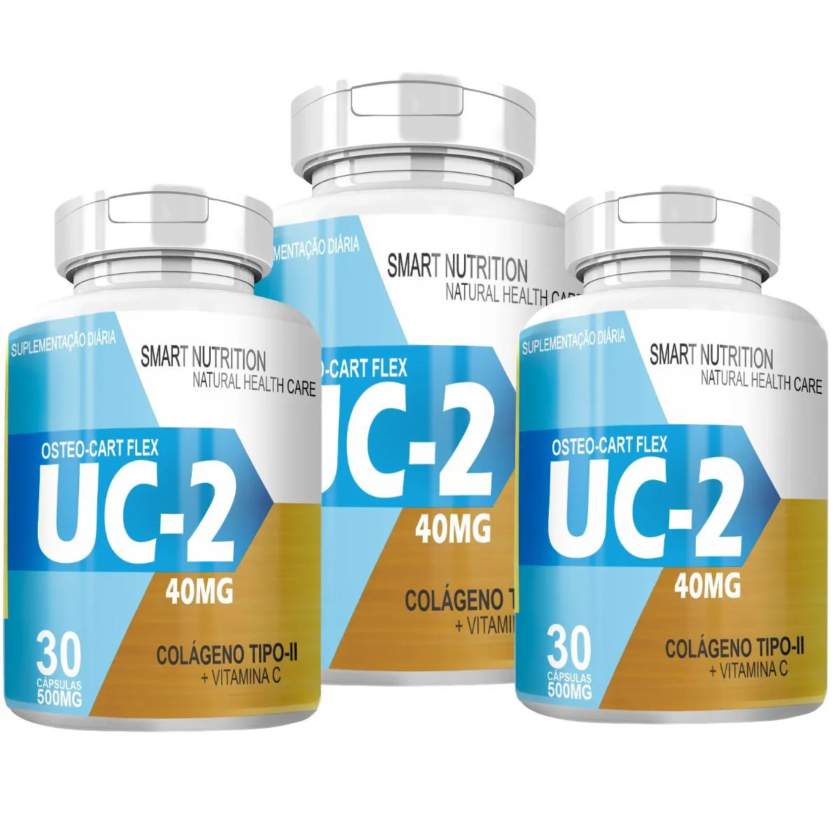 Colágeno Uc-2 Tipo 2 40 Mg com Vitamina C Kit com 3 Potes com Total de 90 Capsulas
