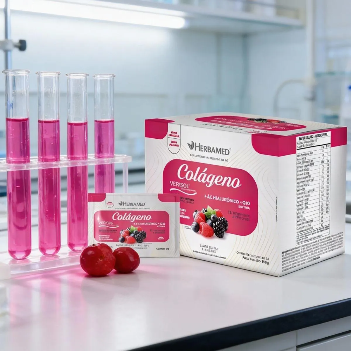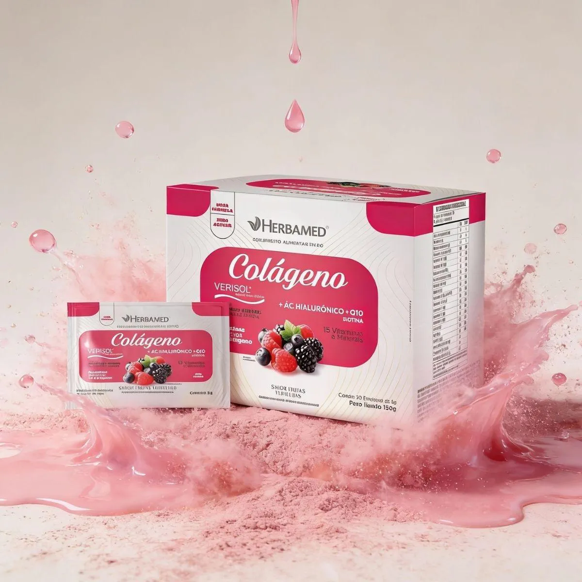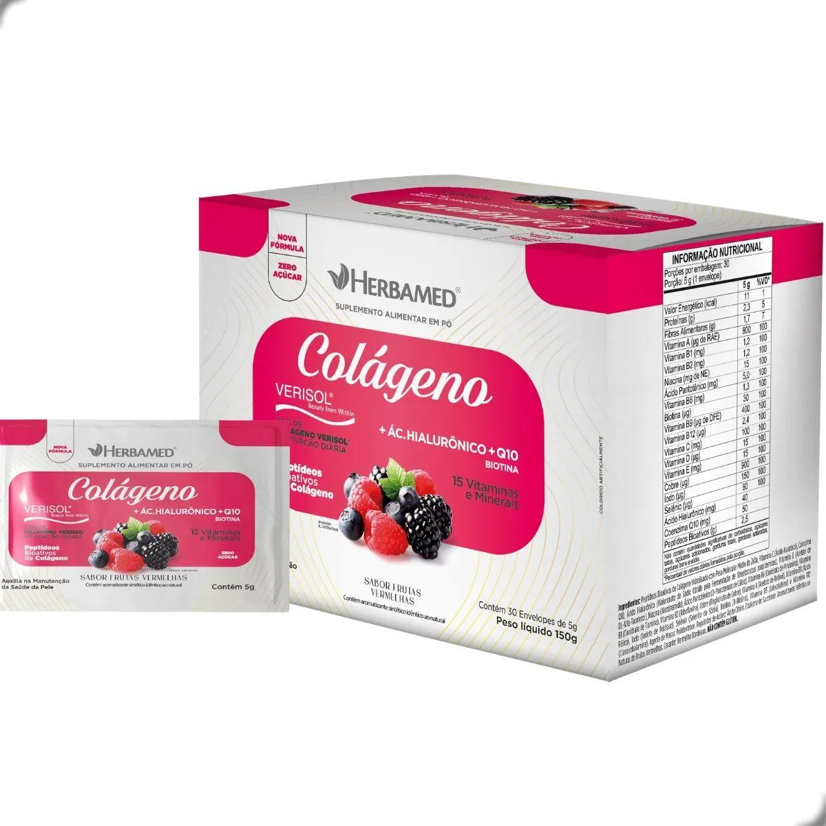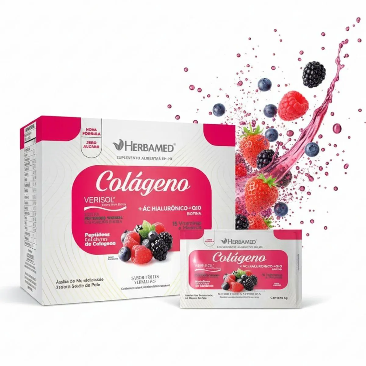 Colageno Verisol com Hialuronico Biotina 5G Box 30 Sache Herbamed Frutas Vermelhas