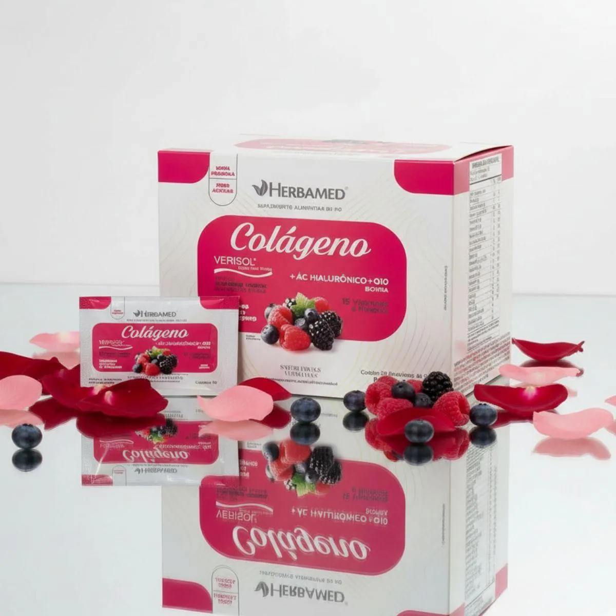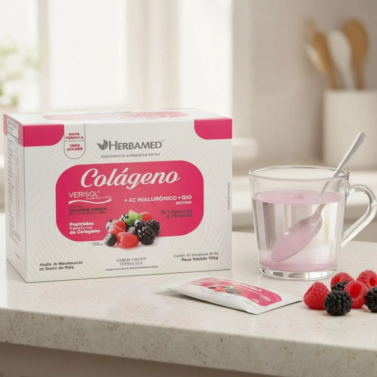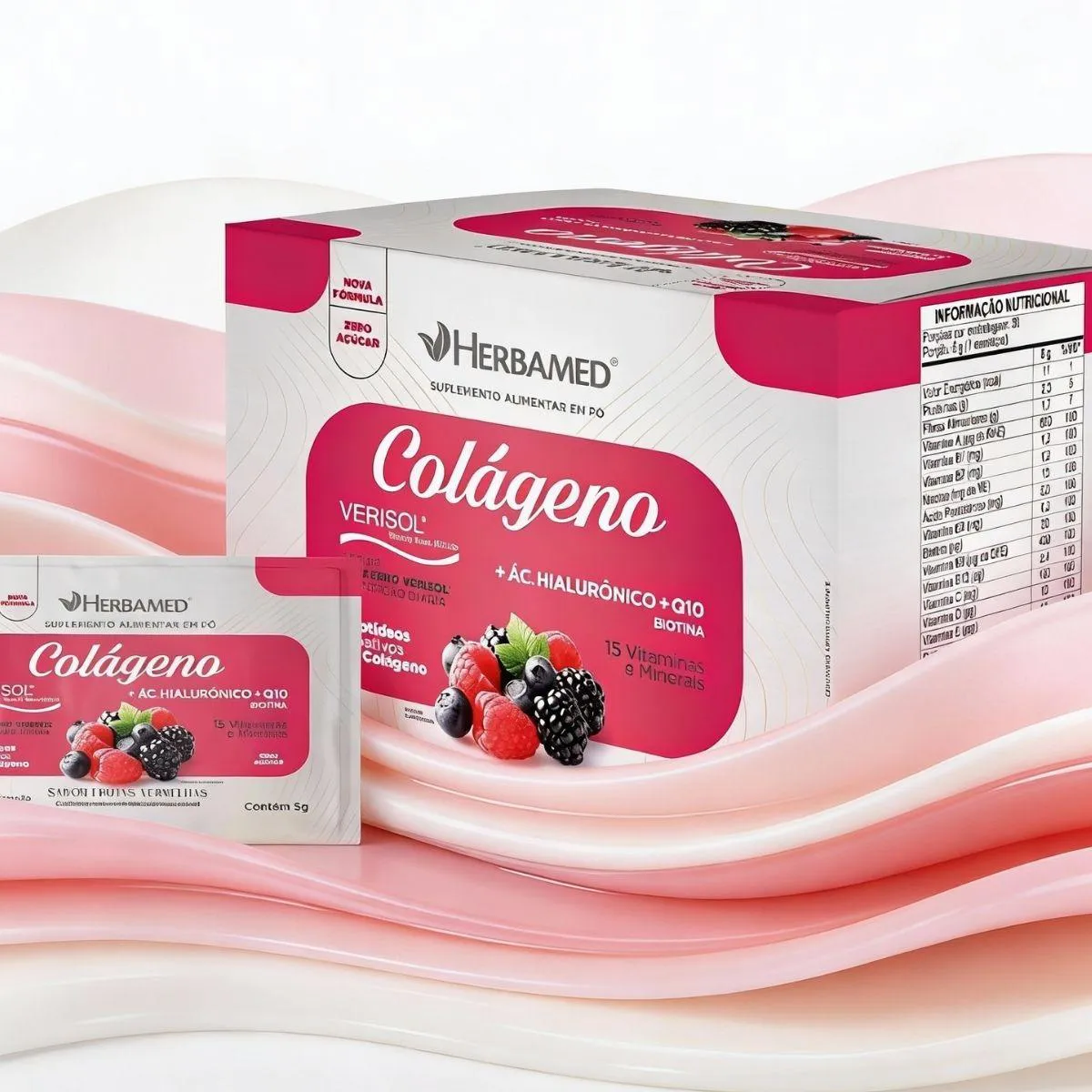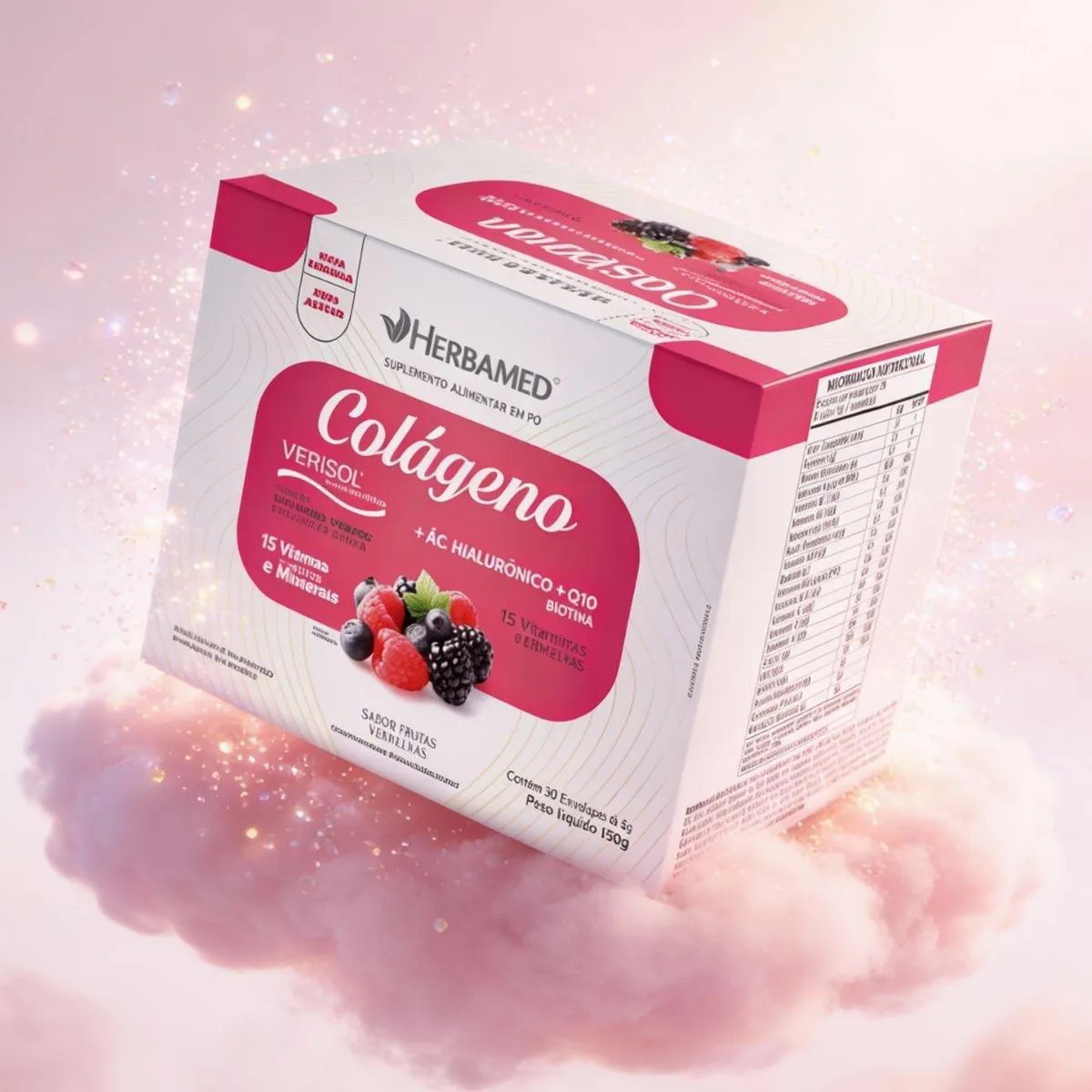 Colageno Verisol com Hialuronico Biotina 5G Box 30 Sache Herbamed Frutas Vermelhas
