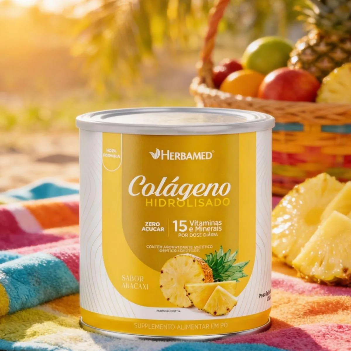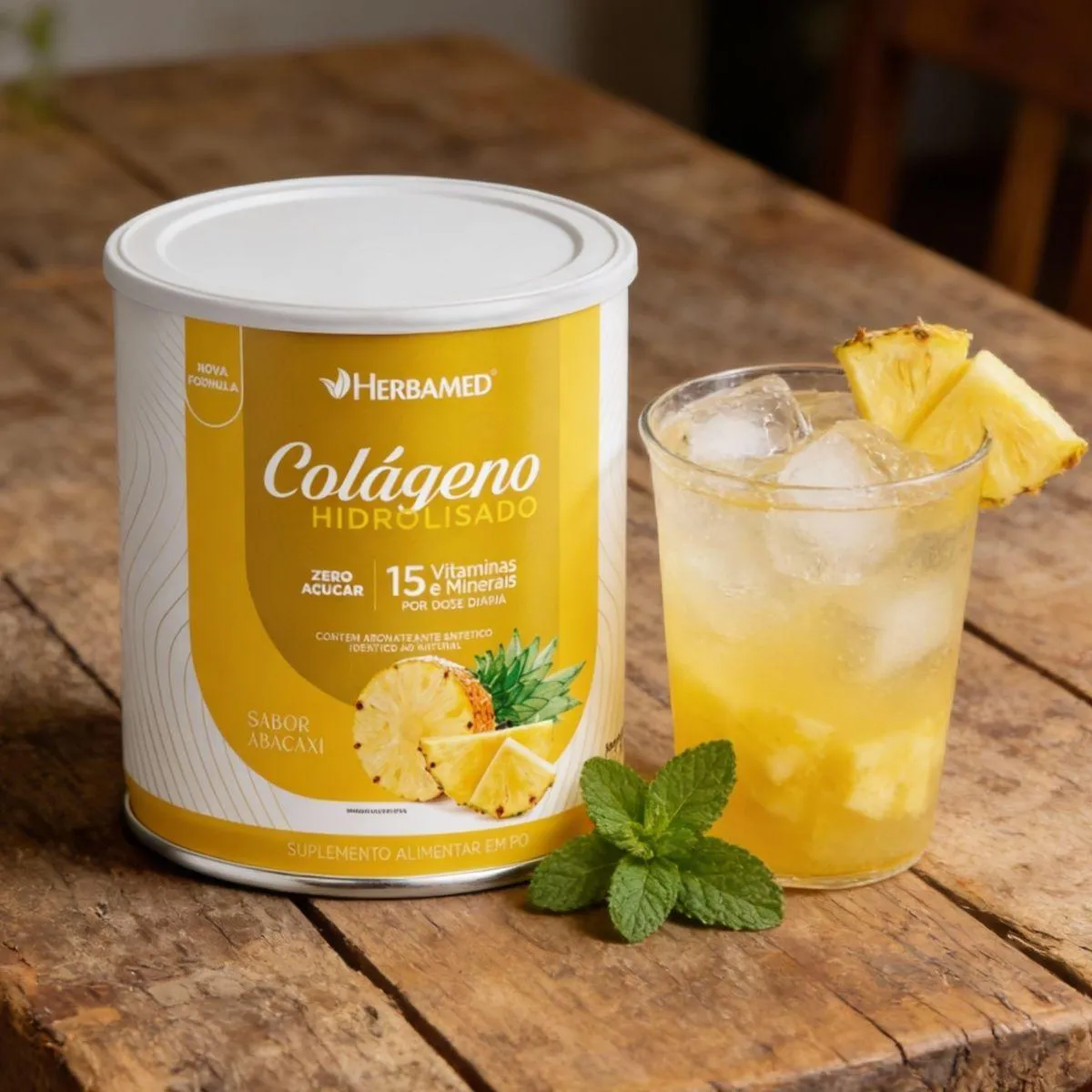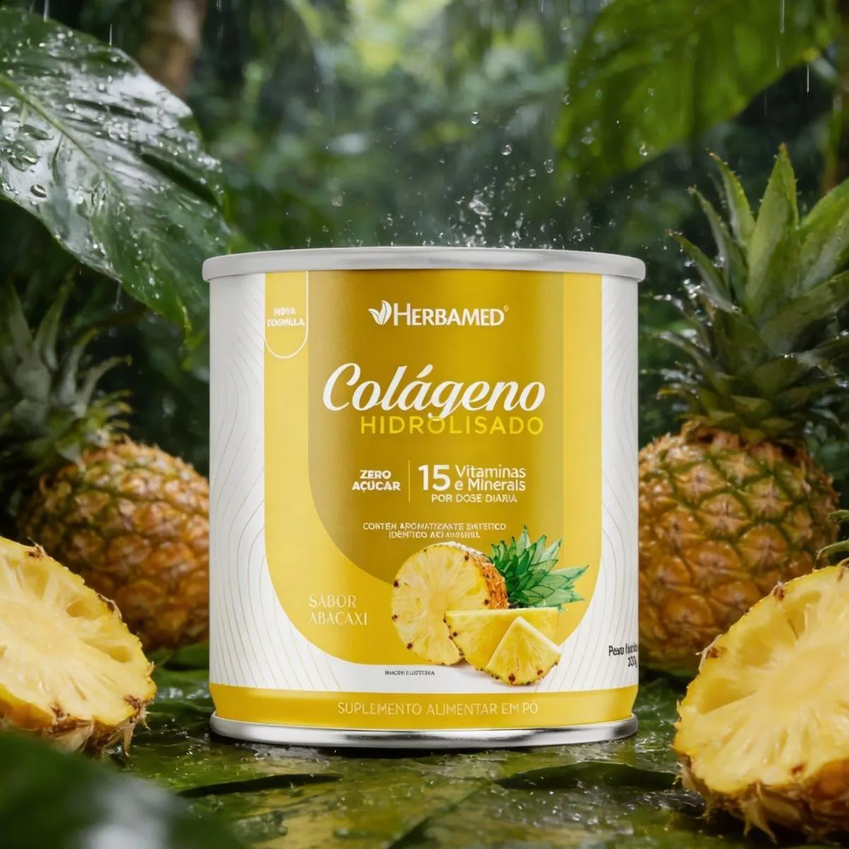 Colageno Verisol com Hialuronico Q10 Biotina 200G Herbamed Abacaxi