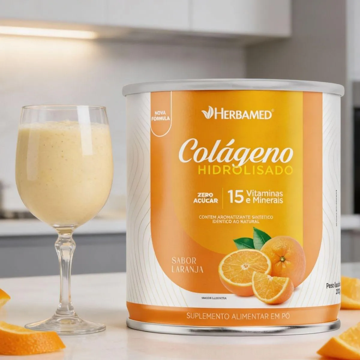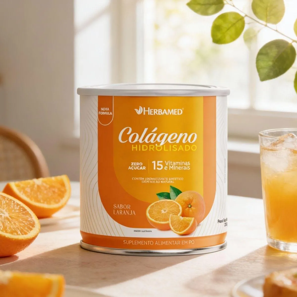 Colageno Verisol com Hialuronico Q10 Biotina 200G Herbamed Laranja