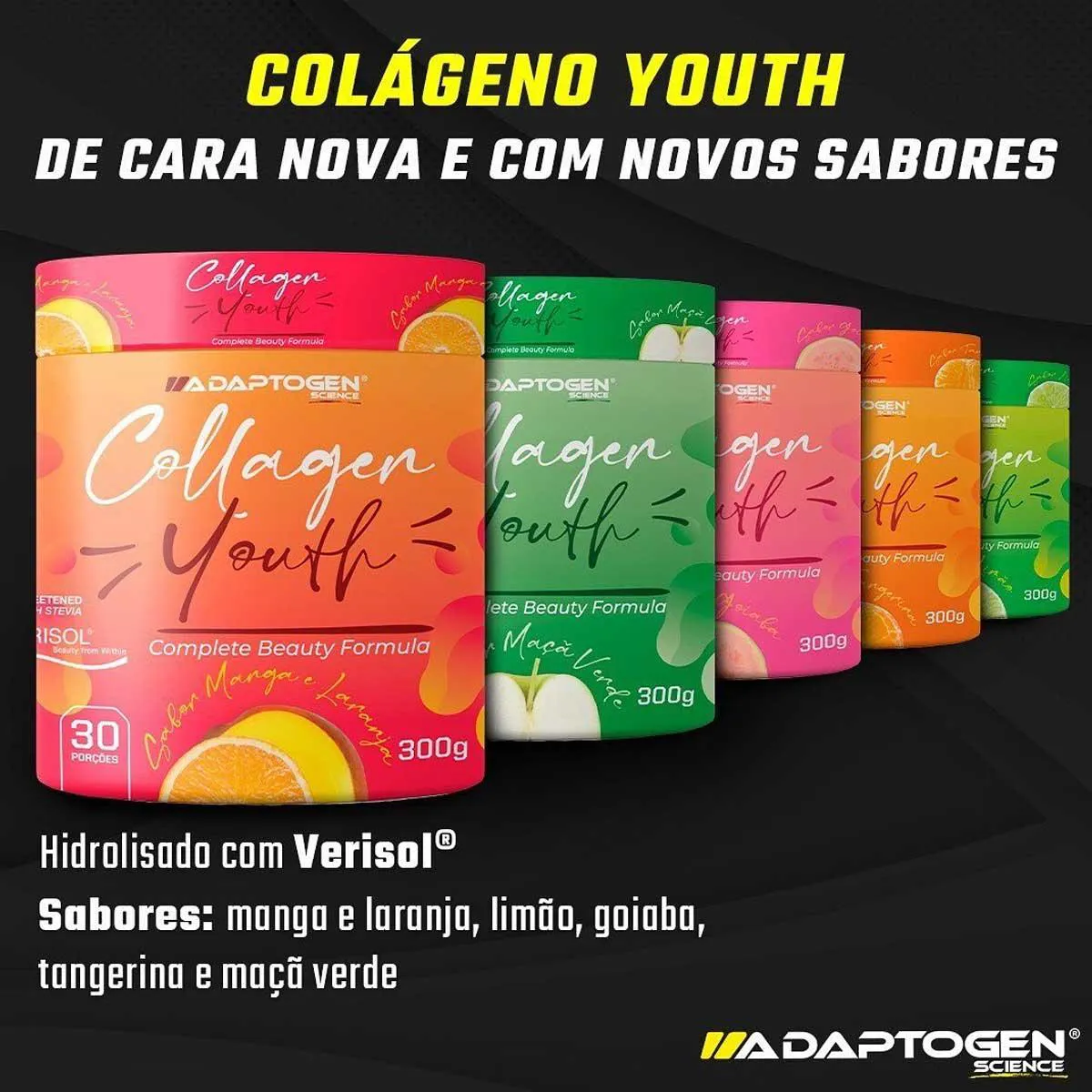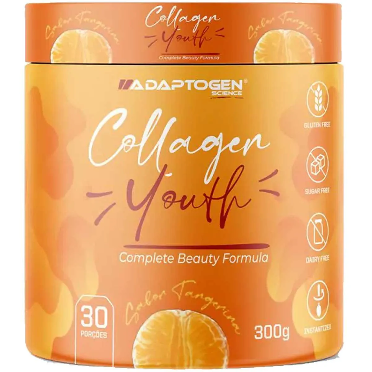 O colágeno é a principal proteína estrutural encontrada na pele, tecidos conjuntivos, cartilagens, ligamentos, tendões e ossos, representando cerca de 30% das proteínas do corpo humano. A produção natural de colágeno declina progressivamente a partir dos 25 anos, quadro que pode ser agravado por fatores exógenos como má alimentação e exposição ao sol. Collagen Youth conta com um mix de vitaminas e minerais, incluindo vitamina A, C, D, E, biotina e zinco, complementa sua fórmula, contribuindo para o fortalecimento de unhas e cabelos. Sem adição de açúcares, lactose, glúten e corantes artificiais.