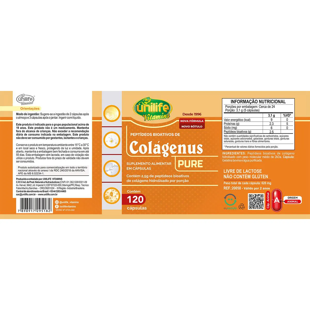 O Colágeno Hidrolisado em Cápsulas da Unilife tem diversas utilidades, em sua composição temos a sua principal substancia muito importante que é o Colágeno, o Colágeno em uma pequena quantidade pode se encontrar em nosso organismo de forma naturalmente, portanto a partir dos 25 anos já perdemos cerca de 1% de produção de Colágeno anualmente, o que pode ser preocupante pois é uma responsável pela boa qualidade da pele e os ossos de todo o corpo, juntamente com o Colágeno encontramos a vitamina c, e vitamina e que permite o Colágeno Hidrolisado fazer uma atuação diretamente na melhor qualidade óssea e da pele de todo o corpo.Colágenus Colágeno Hidrolisado dando uma melhor qualidade na sua pele e ossos!