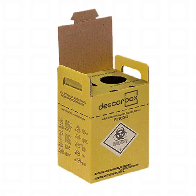 O coletor Descarbox tem como finalidade de uso o desprezo por materiais perfurocortantes provenientes de hospitais, laboratórios, consultórios médicos, farmácia, consultórios médicos, farmácia, consultórios odontológicos e veterinários, ou seja, resíduos perfurantes, cortante e infectante.