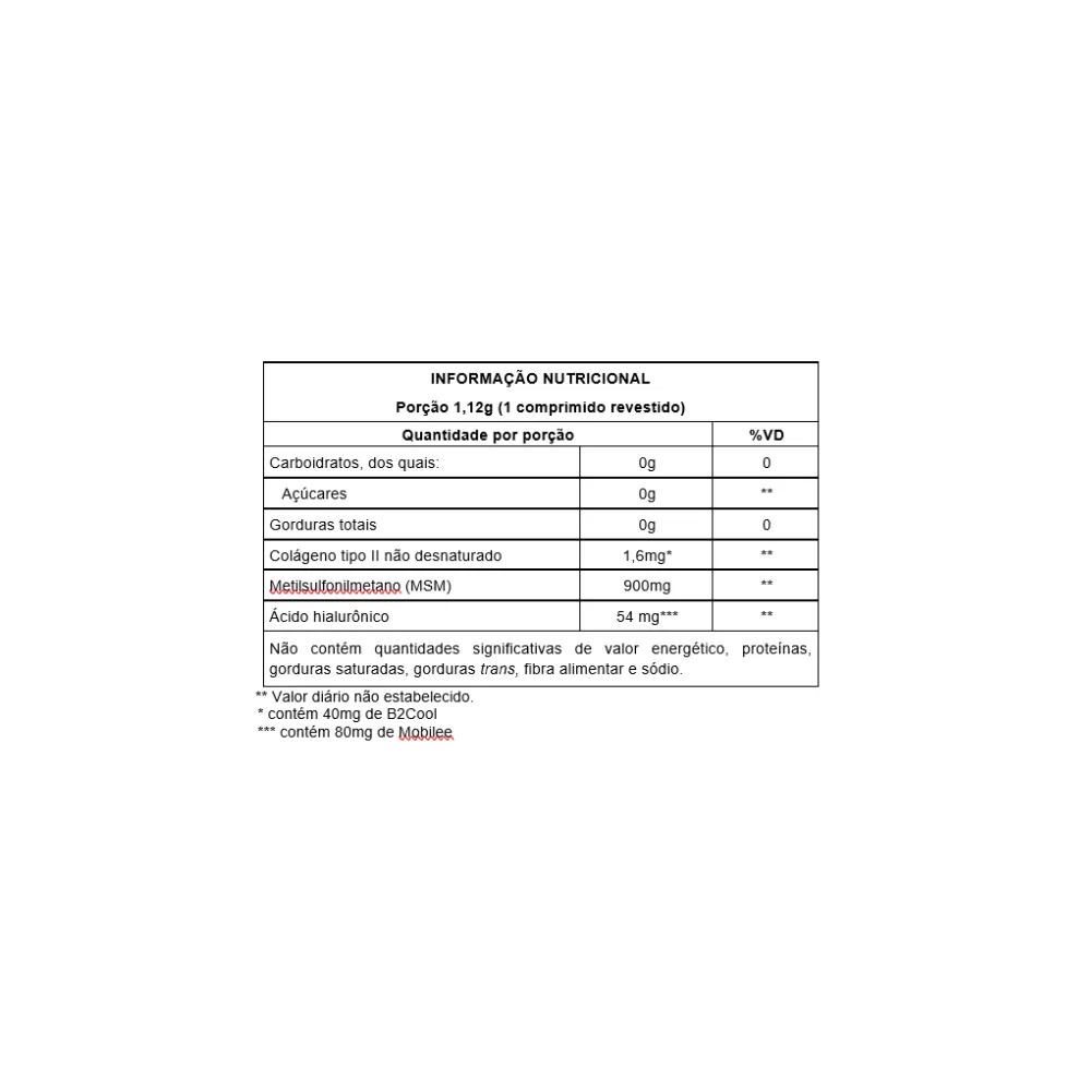 - Contém colágeno tipo II não desnaturado.