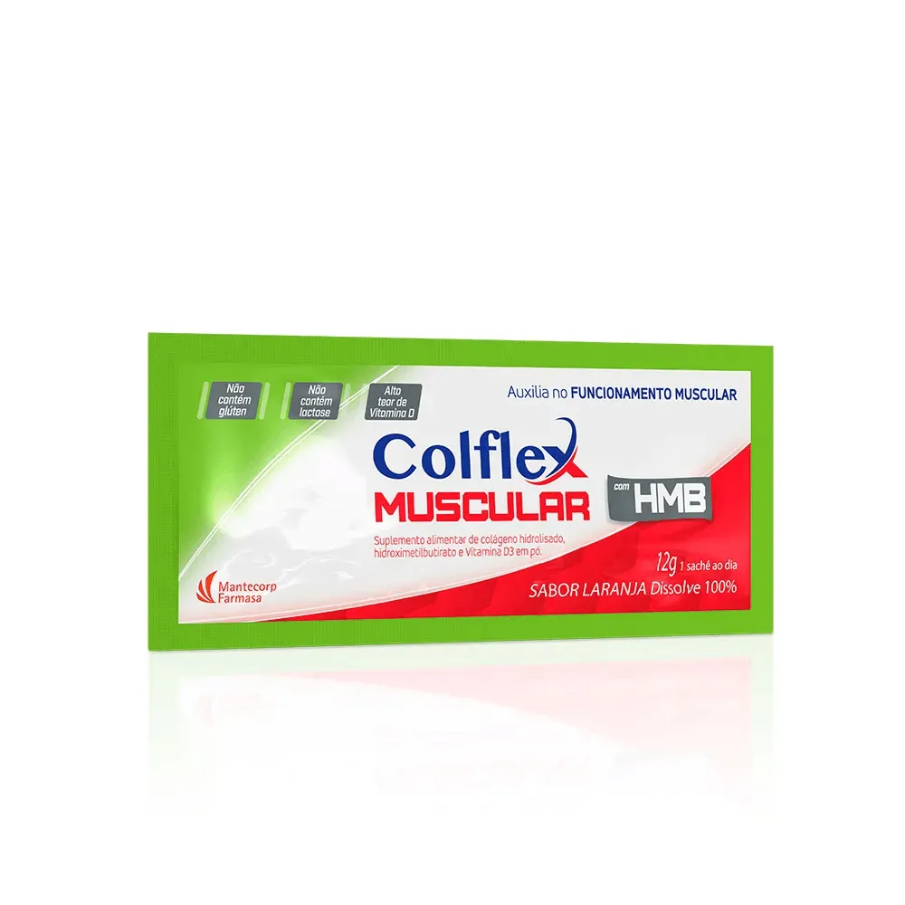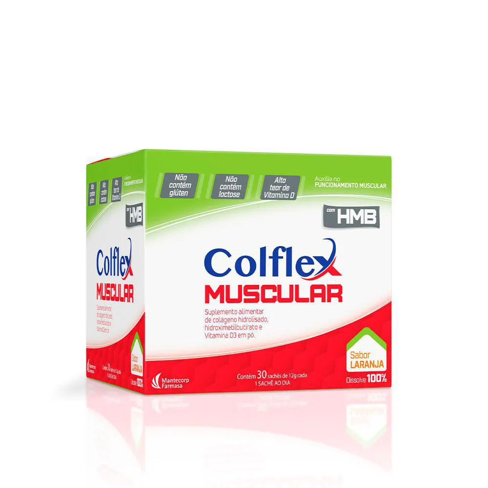O Colflex Muscular é um suplemento nutricional composto por colágeno hidrolisado, HMB e vitamina d, com sabor laranja. É uma fonte de proteínas que contribui para o suporte muscular e ósseo. A vitamina D presente na fórmula auxilia no funcionamento muscular, oferecendo benefícios nutricionais para o sistema musculoesquelético.