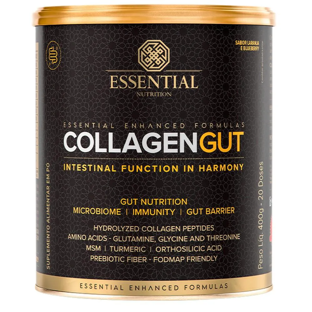 Collagen Gut (Lata 400G) - Peptídeos De Colágeno - Laranja E Blueberry - Essential Nutrition