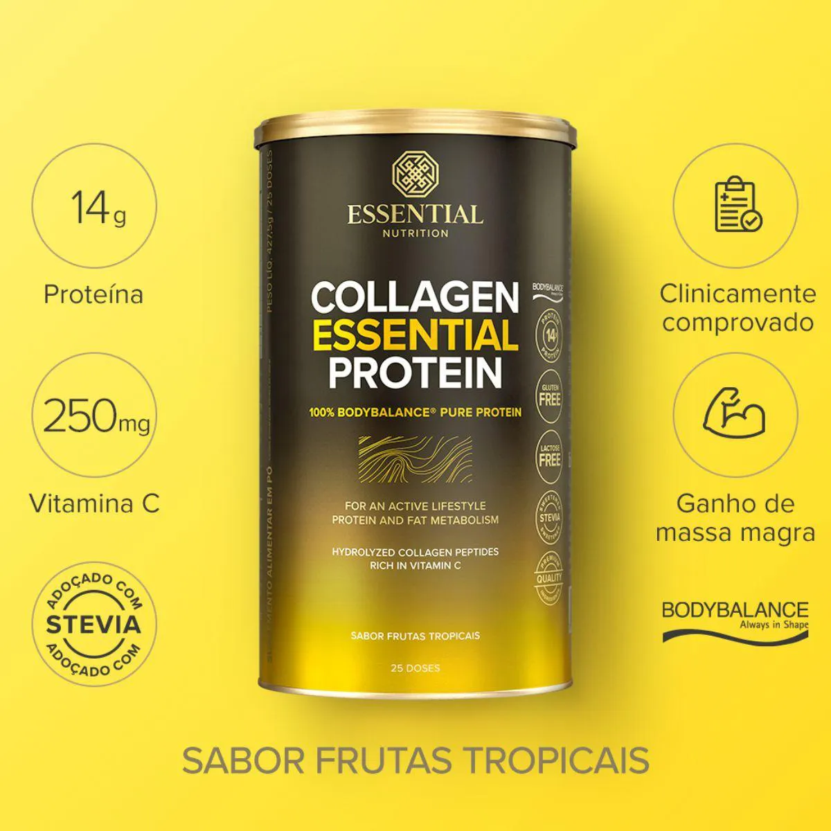 Collagen Protein 30 Doses Lata 457,5G Essential Nutrition Frutas Tropicais