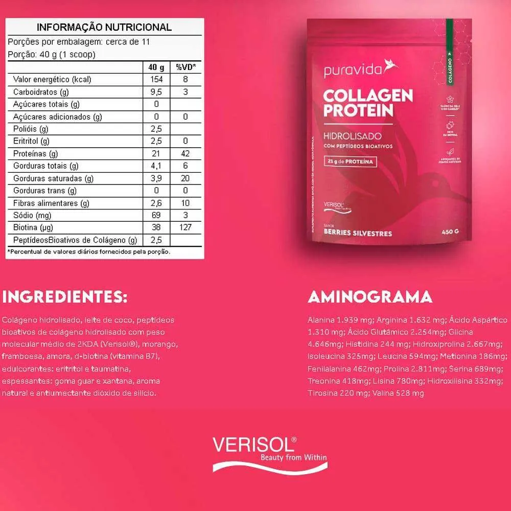 Collagen Protein Hidrolisado Verisol Berries Silvestres (450G) - Pura Vida