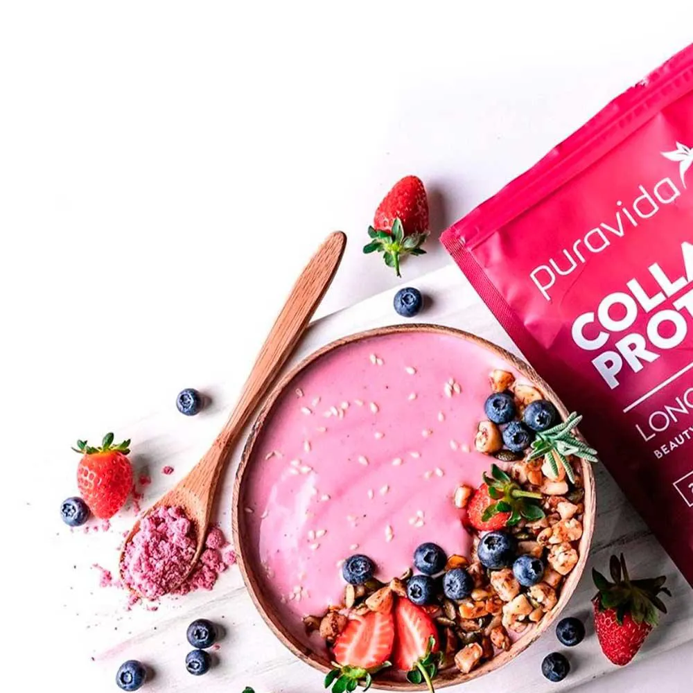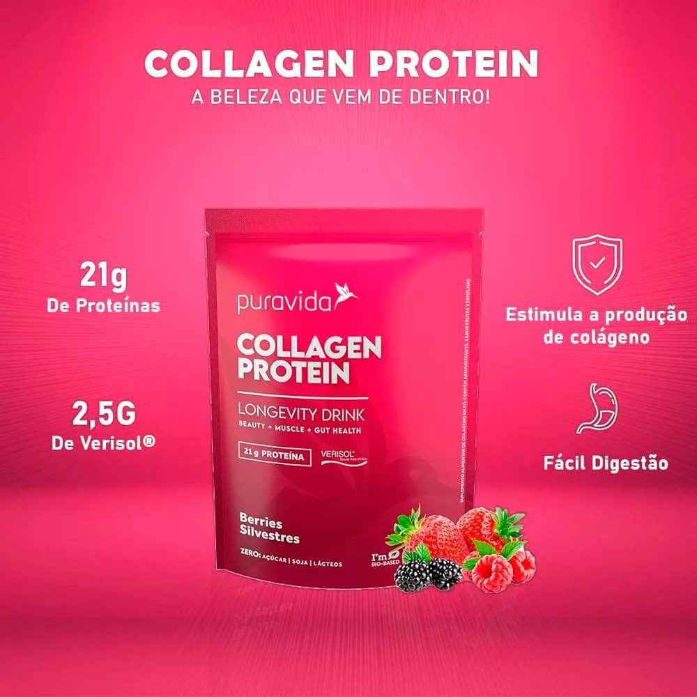 O COLLAGEN PROTEIN da Puravida é um colágeno hidrolisado em pó sabor frutas silvestres. Uma bebida leve, saudável de verdade e saborosa. Os peptídeos de colágeno são uma fonte de proteína de excepcional biodisponibilidade.