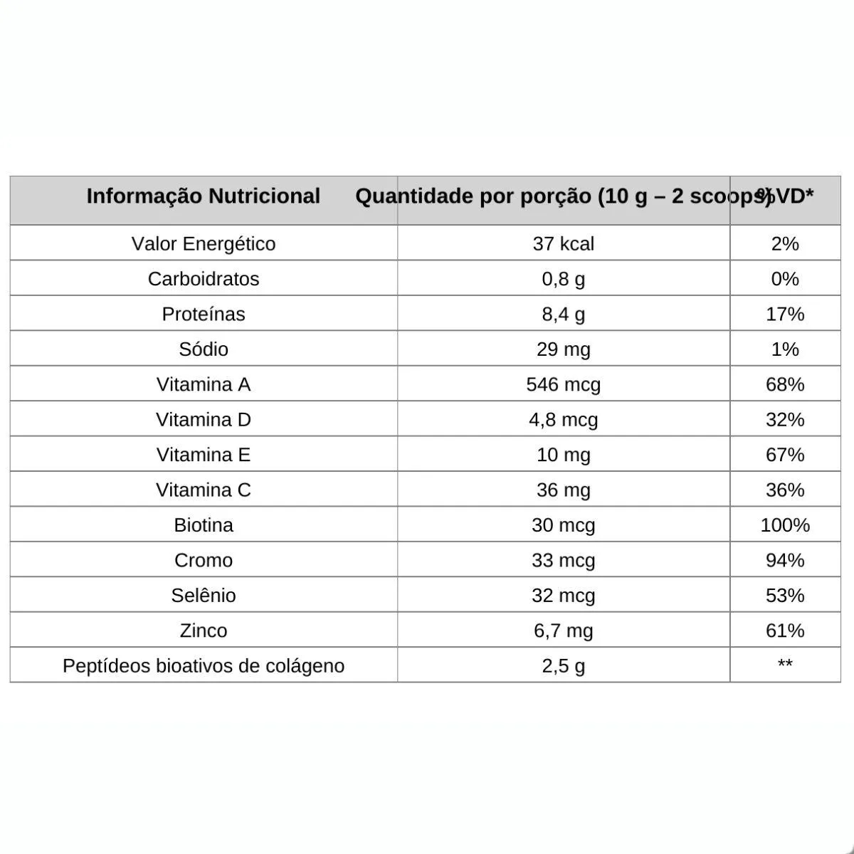 - Suporte nutricional com colágeno 100% hidrolisado de alta pureza.