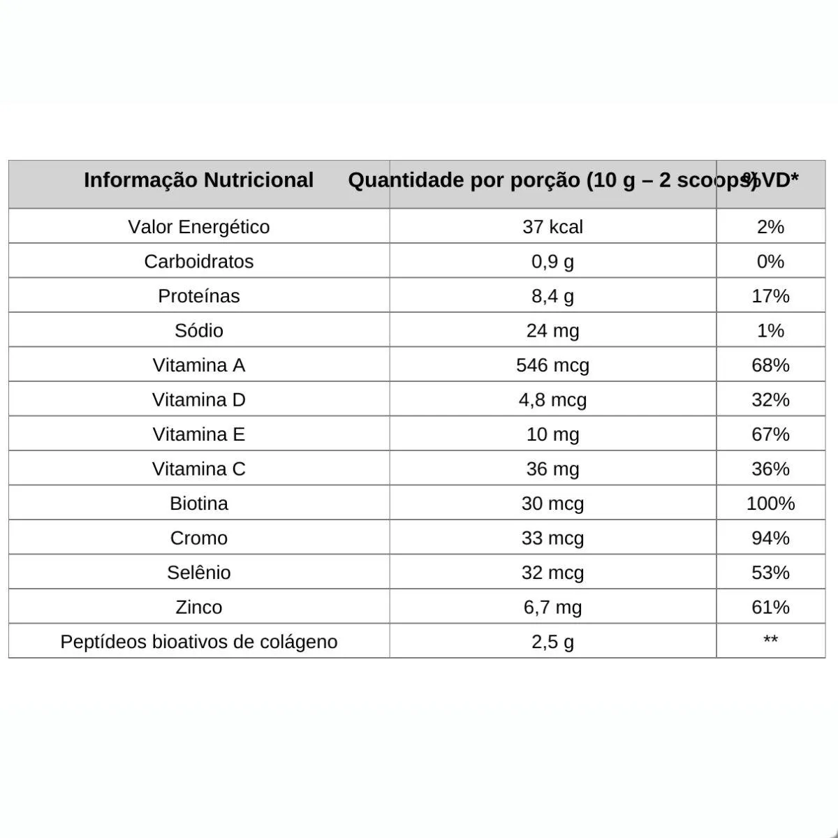- Colágeno de alta pureza e fácil absorção.
