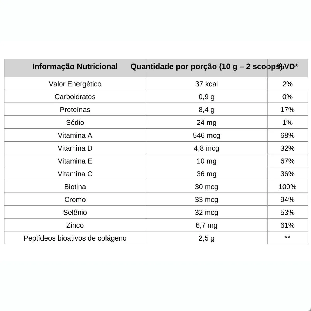 A composição contém colágeno hidrolisado de alta pureza, mantendo a filosofia Nutrify de evitar aditivos artificiais, corantes e componentes desnecessários. O perfil minimalista prioriza densidade nutricional, respeitando o conceito de nutrição responsável, com matérias-primas selecionadas e origem confiável.