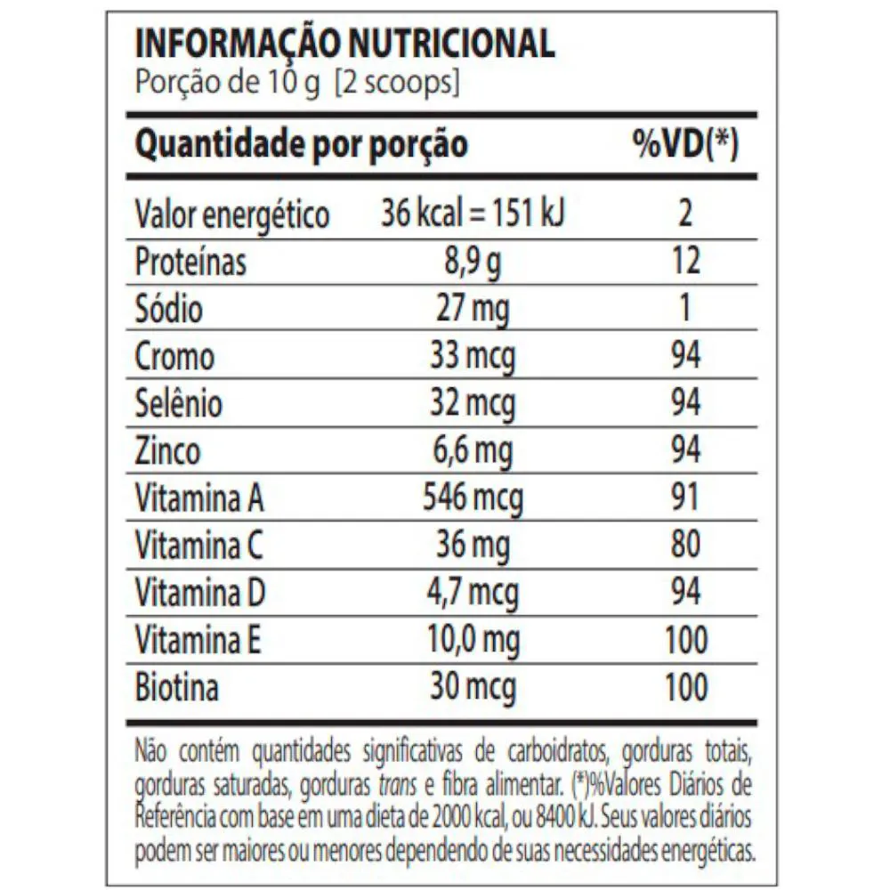 Collagen Renew colágeno Hidrolisado Laranja Nutrify 300g BENEFÍCIOS: FORTALECIMENTO DA PELE, UNHAS E CABELOS. A firmeza e a sustentação de nossa pele estão diretamente relacionadas à produção de colágeno pelo organismo, que diminui progressivamente ao longo dos anos, ocasionando flacidez e outros sinais de envelhecimento. À base de colágeno hidrolisado, a fórmula de COLLAGEN RENEW Nutrify oferta também 2,5 g de peptídeos bioativos de colágeno Verisol® em cada porção, ajudando a recuperar a firmeza dos tecidos, melhorando sua aparência. COLLAGEN RENEW Nutrify é isento de açúcar, lactose, glúten, corantes e adoçantes artificiais, e conta com adição de vitaminas e minerais antioxidantes, que favorecem a absorção dos peptídeos e promovem o fortalecimento de unhas e cabelos. NUTRIFY valoriza a origem de cada ingrediente, respeita a integridade de suas fontes naturais e dos envolvidos em sua produção. É assim que criamos produtos saudáveis e saborosos, que fazem bem para as pessoas e para o planeta. Acreditamos que nutrir corpo e mente de modo saudável nos torna capazes de alimentar o mundo com atitudes positivas. INGREDIENTES: Colágeno hidrolisado, colágeno hidrolisado bioativo (Verisol®), mix de vitaminas e minerais [vitamina c (ácido ascórbico), vitamina e (DL alfa-acetato de tocoferol), zinco (sulfato de zinco mono-hidratado), vitamina a (acetato de retinol), cromo (picolinato de cromo), selênio (selenito de sódio), vitamina H (biotina) e vitamina d (colecalciferol)], acidulante ácido cítrico, aroma sintético idêntico ao natural, edulcorante estévia e corante betacaroteno. NÃO CONTÉM GLÚTEN. Contém aromatizante sintético idêntico ao natural. APRESENTAÇÃO: Embalagem disponível: lata contendo suplemento em pó. Sabor laranja. Peso Líquido: 300 g Produto classificado como: PÓ PARA O PREPARO DE BEBIDA À BASE DE PEPTÍDEOS DE COLÁGENO COM ADIÇÃO DE VITAMINAS E MINERAIS SABOR DE LARANJA.