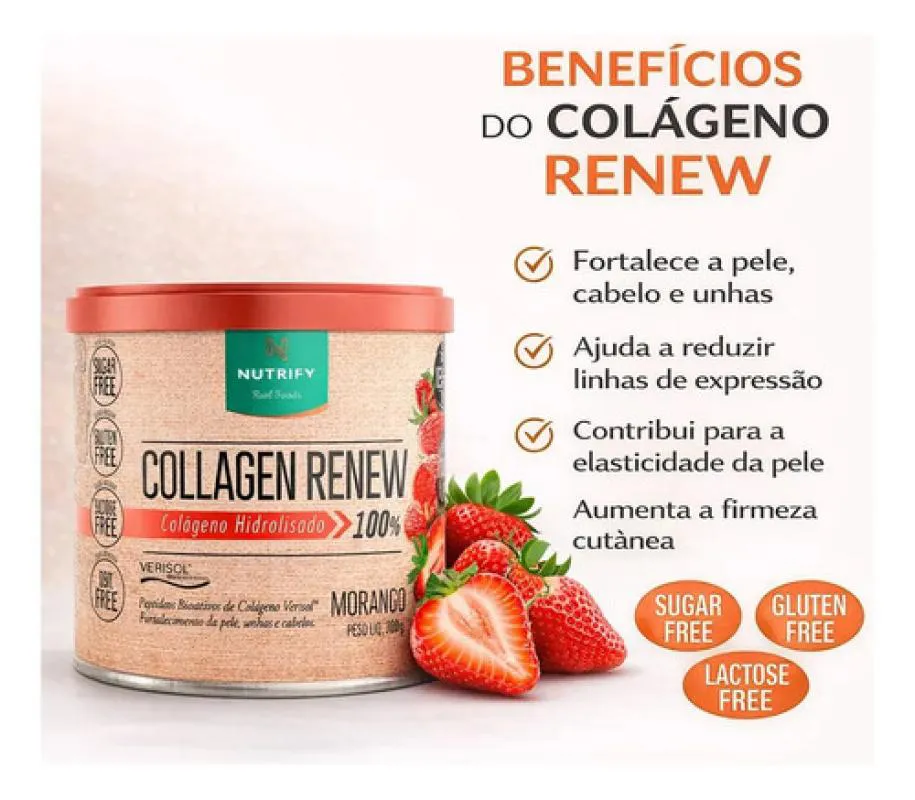 Collagen Renew Colageno Hidrolisado Verisol Morango 300G Nutrify