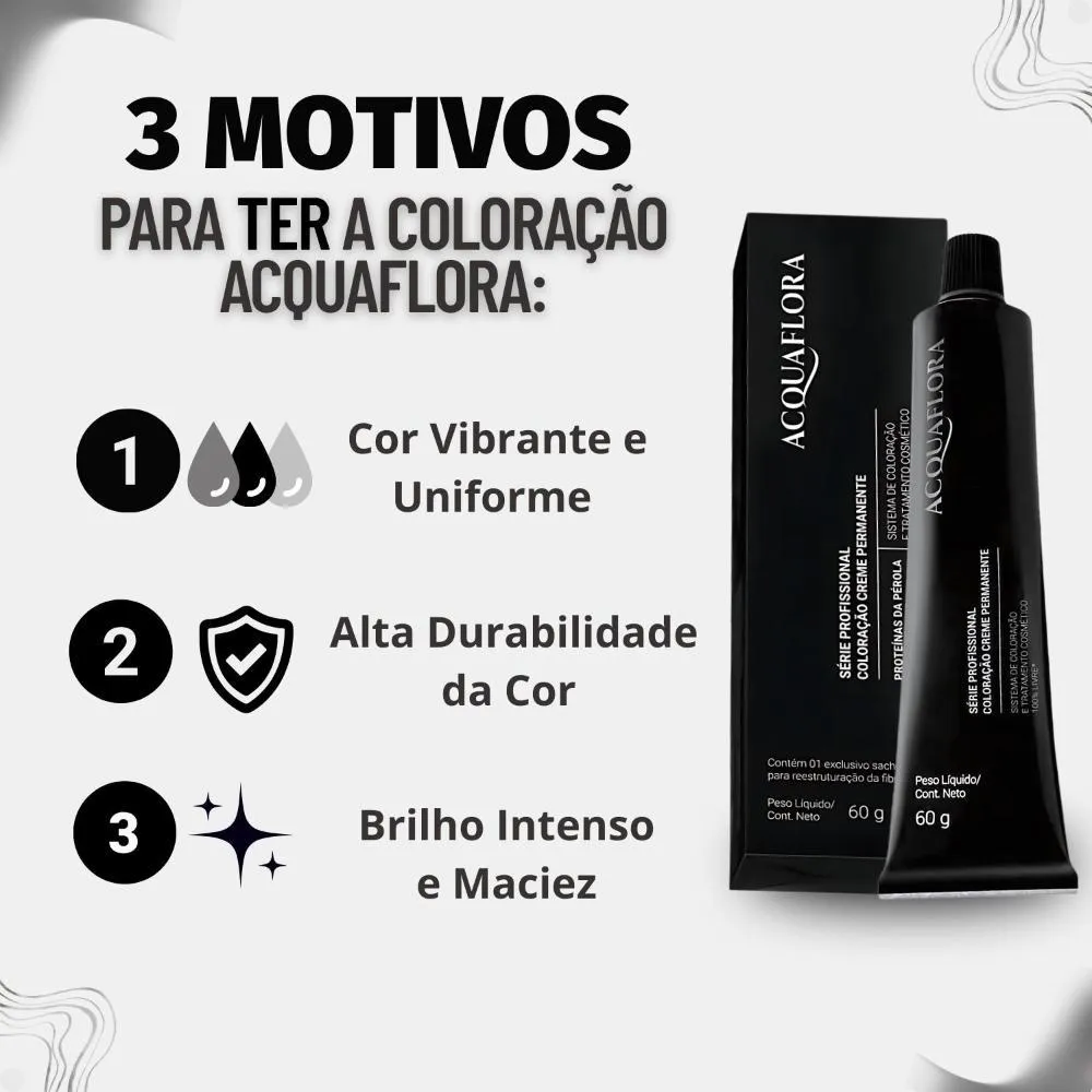 Coloração Creme Acquaflora 12.11 Louro Especial Acinzentado Intenso 60g A Acquaflora cosméticos busca na natureza recursos que, aliados à tecnologia de ponta, atendam seus desejos de saúde, beleza e bem estar e traz até você o Sistema de Coloração e Tratamento Série Profissional com Proteína da Pérola e Silício Orgânico. O resultado é uma perfeita cobertura de fios brancos, alta durabilidade de cor e brilho incrível. Seu exclusivo sistema de tratamento pós coloração protege a queratina presente nos cabelos e ajuda a preservar o aspecto natural dos fios coloridos. Benefícios: -Dermatologicamente testado; -100% cobertura dos fios brancos (até o 7.0 – em tons mais claros, acima do 8.0 pode haver transparência); -Após 20 lavagens, permanece ainda 82% da cor; -Colore e restaura os danos anteriores ao dia da coloração em 20%; - Deixa os cabelos 4X mais fáceis de pentear; - Aumenta 90% do brilho dos cabelos Contém: Resorcinol. Fenilenodiaminas. Amônia. Instruções contidas na parte interna do cartucho. . Precauções: Contém substâncias passíveis de causar irritação na pele de determinadas pessoas. Antes de usar, faça a prova de toque. Não usar nos cílios e sobrancelhas. Evite contato com os olhos. Em caso de contato com os olhos, lavar imediatamente com água em abundância. Não aplicar se o couro cabeludo estiver irritado ou lesionado. Pode causar reação alérgica, mesmo que você já tenha utilizado o produto anteriormente sem qualquer reação. A COLORAÇÃO CAPILAR PODE PROVOCAR REAÇÕES ALÉRGICAS QUE, EM CASOS RAROS, PODEM SER GRAVES. Portanto, é importante respeitar certas precauções. O produto nunca deverá ser utilizado em clientes que no passado experimentaram qualquer reação a produtos de coloração, tenham o couro cabeludo sensível, irritado ou lesionado ( nestes casos deverá ser consultado um médico antes da utilização de qualquer produto de coloração) Tatuagens podem aumentar o risco de alergia a esse produto. Não utilizar imediatamente após um processo químico de permanente, defrisagem ou alisamento. Não utilizar esse produto sobre cabelos em que se tenha sido aplicado qualquer tipo de henê, tintura progressiva, ou a base de sais metálicos. Não se recomenda o uso desse produto em gestantes. O uso desse produto é impróprio em crianças. Demais precauções, leia atentamente a parte interna do cartucho.