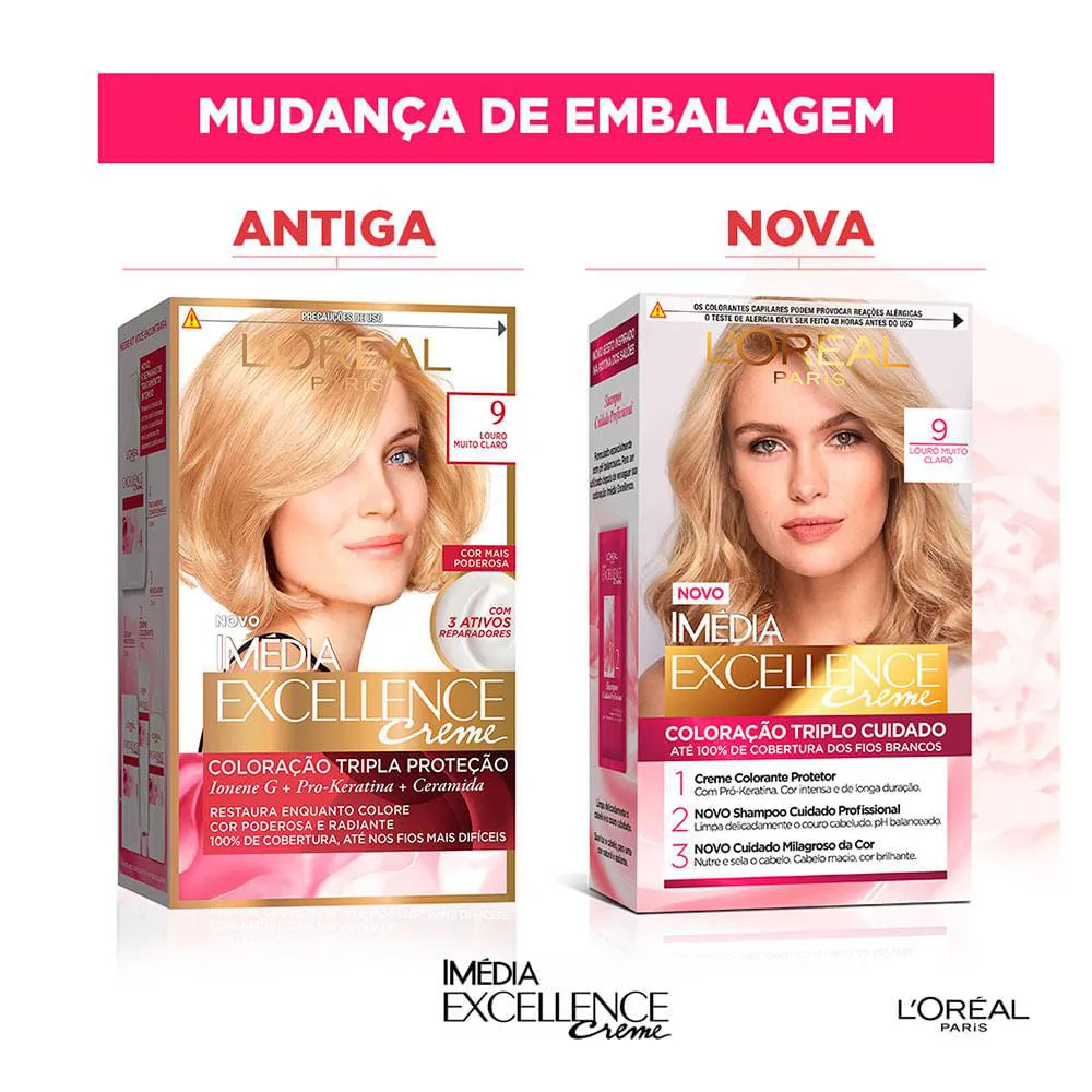 Imédia Excellence restaura enquanto colore pois é enriquecida com ativos conhecidos por seu poder reparados. Com Ionene G, Pro-Keratina e Ceramida restaura, fortalece e protege seu cabelo para melhor receber a cor. Um cuidado mais poderoso, cor mais poderosa.