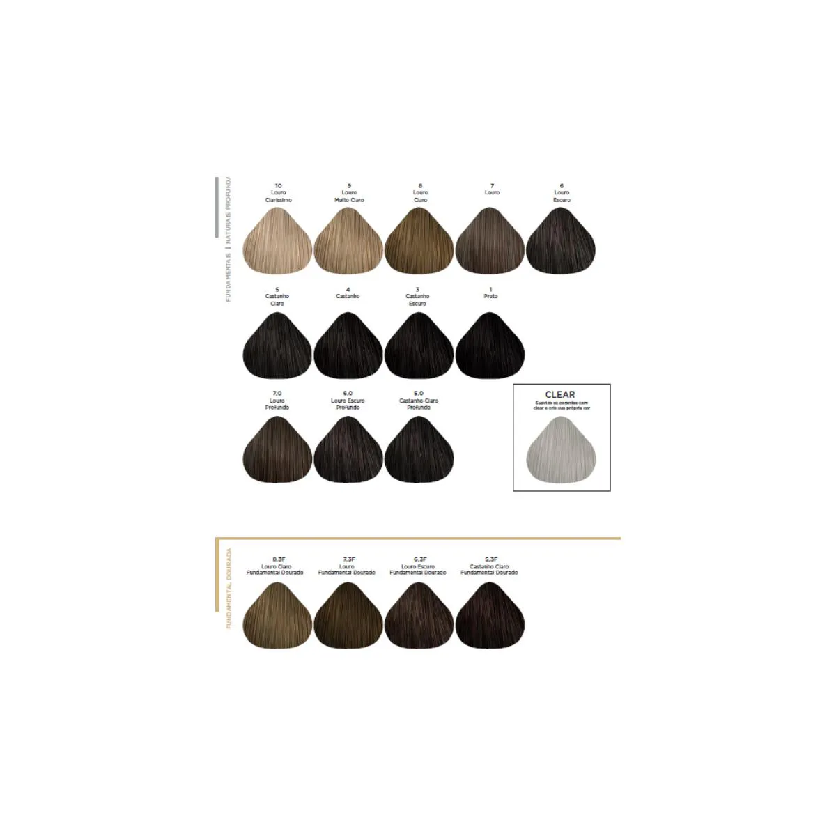 Caso deseje realçar a cor do comprimento e pontas, esfumar a raíz e clarear levemente até 1 tom, utilize o Oxidante de 10 volumes.