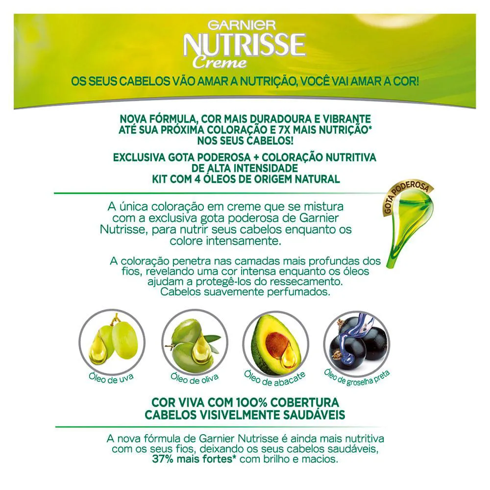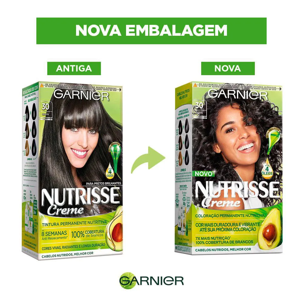 A nova fórmula de Garnier Nutrisse une alta tecnologia com ingredientes naturais, que te ajudarão a conquistar em casa até as cores mais cobiçadas e difíceis. O benefício? Age protegendo a fibra capilar do ressecamento, garantindo uma reconstrução total dos fios e um resultado de cor muito mais intenso.