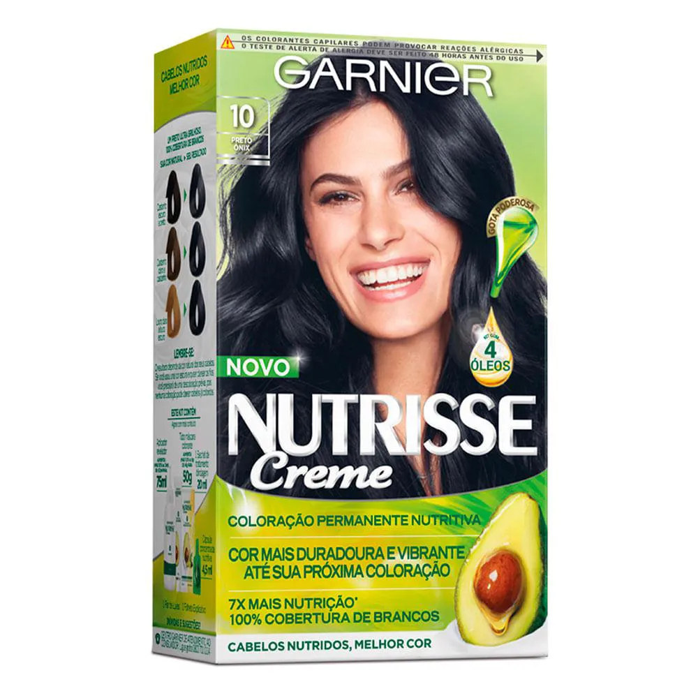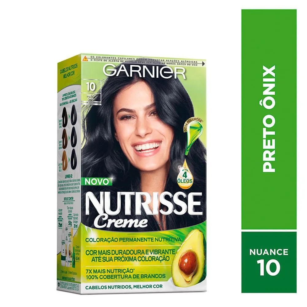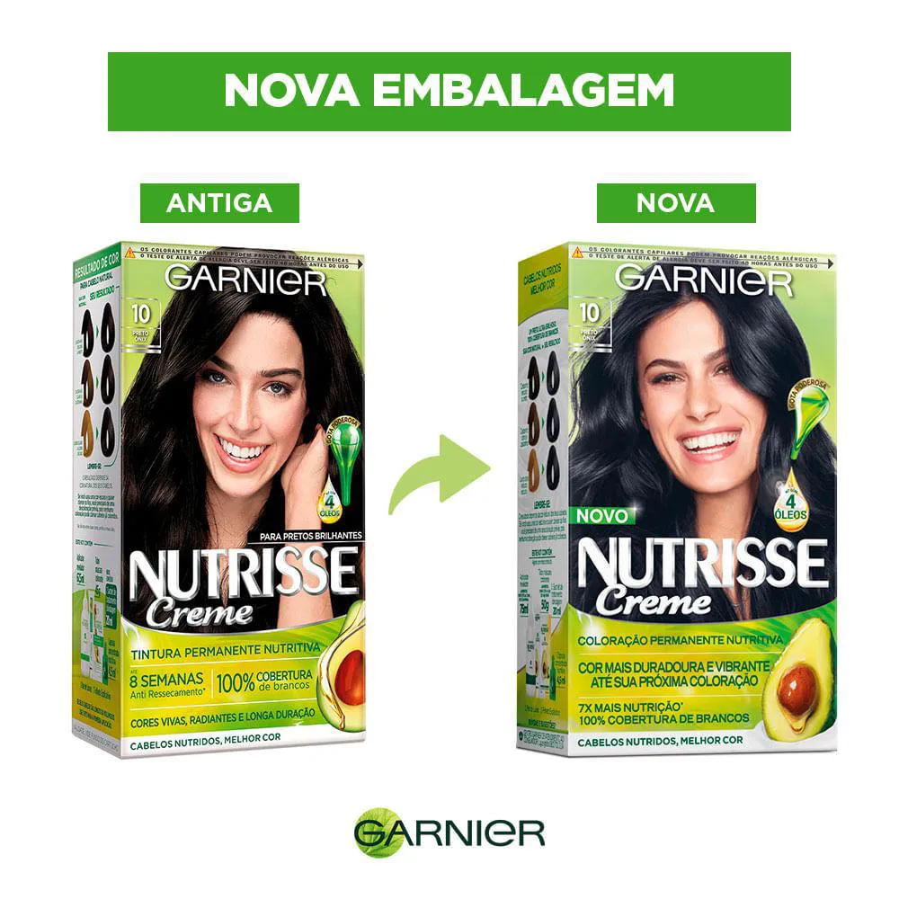 Garnier Nutrisse Creme é a coloração permanente que garante cores vivas, radiantes e de longa duração. Para pretos brilhantes, é a única com Blindagem Nutritiva, que fixa a cor profundamente e por mais tempo.