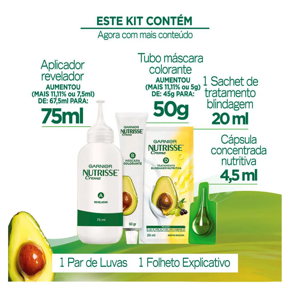 A nova fórmula de Garnier Nutrisse une alta tecnologia com ingredientes naturais, que te ajudarão a conquistar em casa até as cores mais cobiçadas e difíceis. O benefício? Age protegendo a fibra capilar do ressecamento, garantindo uma reconstrução total dos fios e um resultado de cor muito mais intenso.