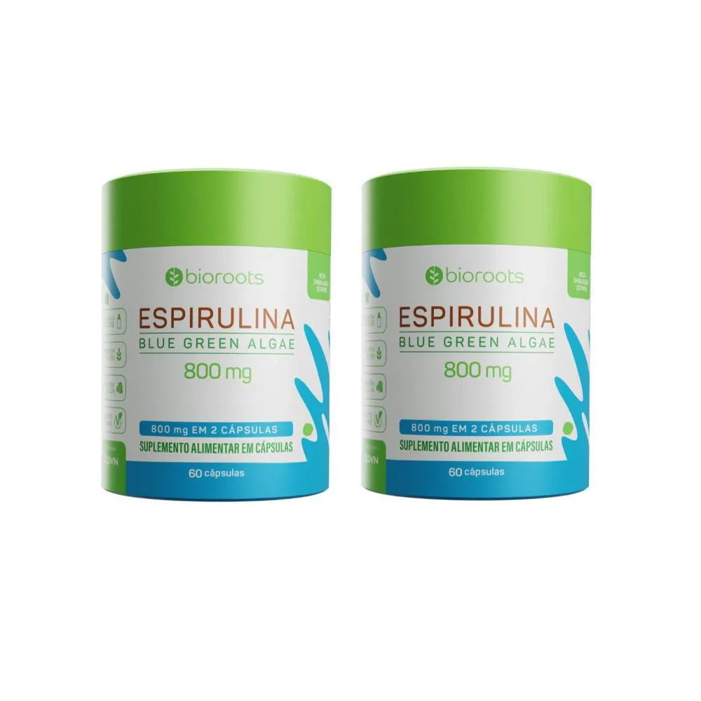 Combo 2 Espirulina Blue Green Algae 400Mg com 60 Cápsulas - Bioroots
