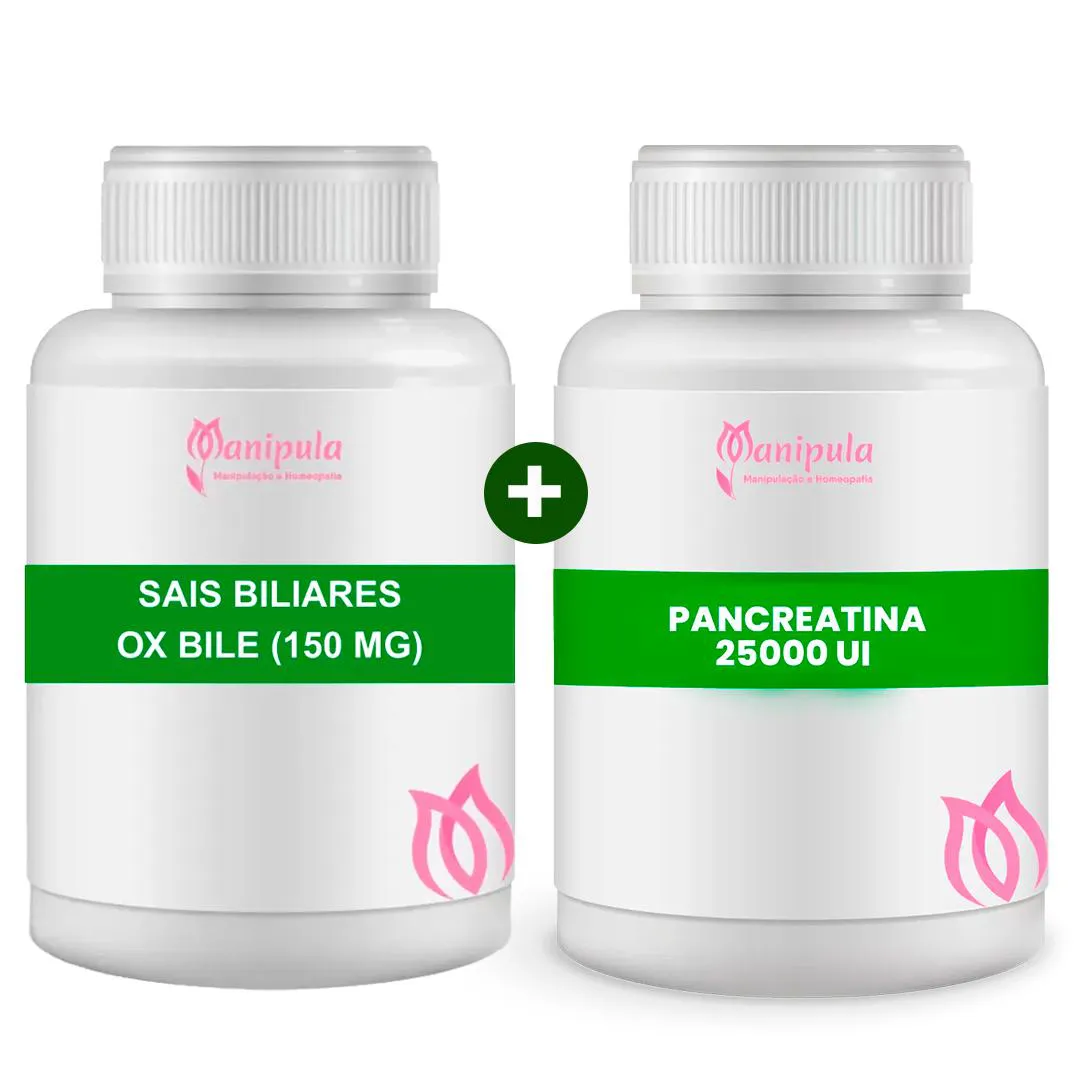 Combo Digestenzyme - Sais Biliares (Oxbile) 150 Mg + Enzimas Digestivas 300 Mg / 60 Doses Cada