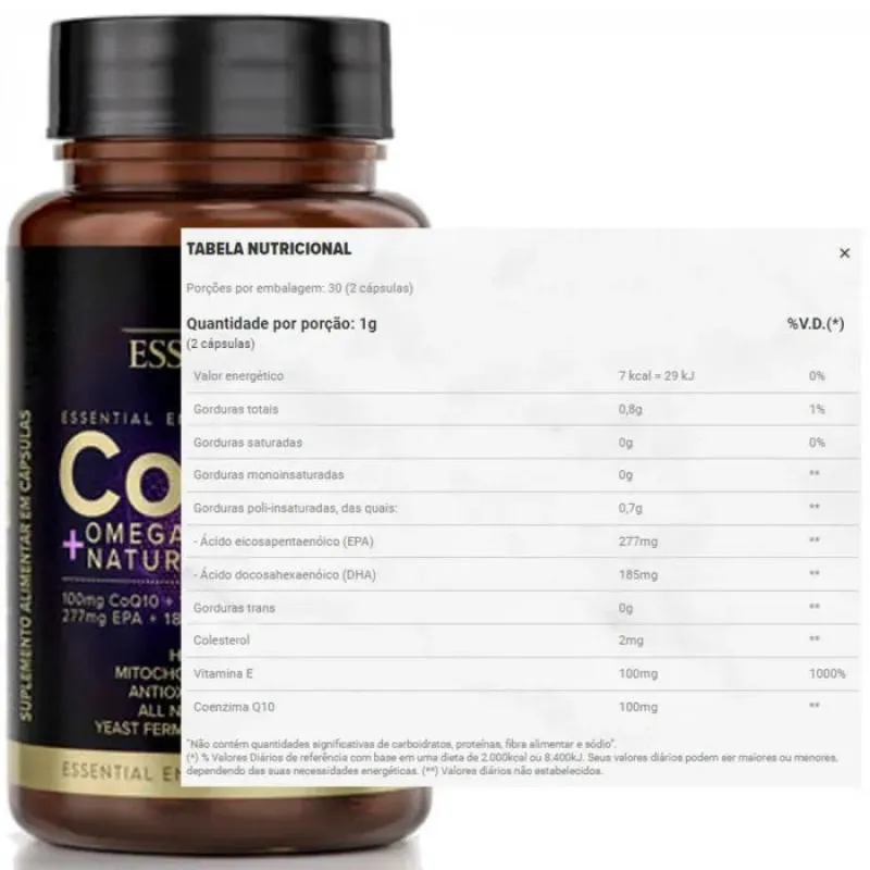 - Fórmula com CoQ10, Ômega-3 e Vitamina E natural.